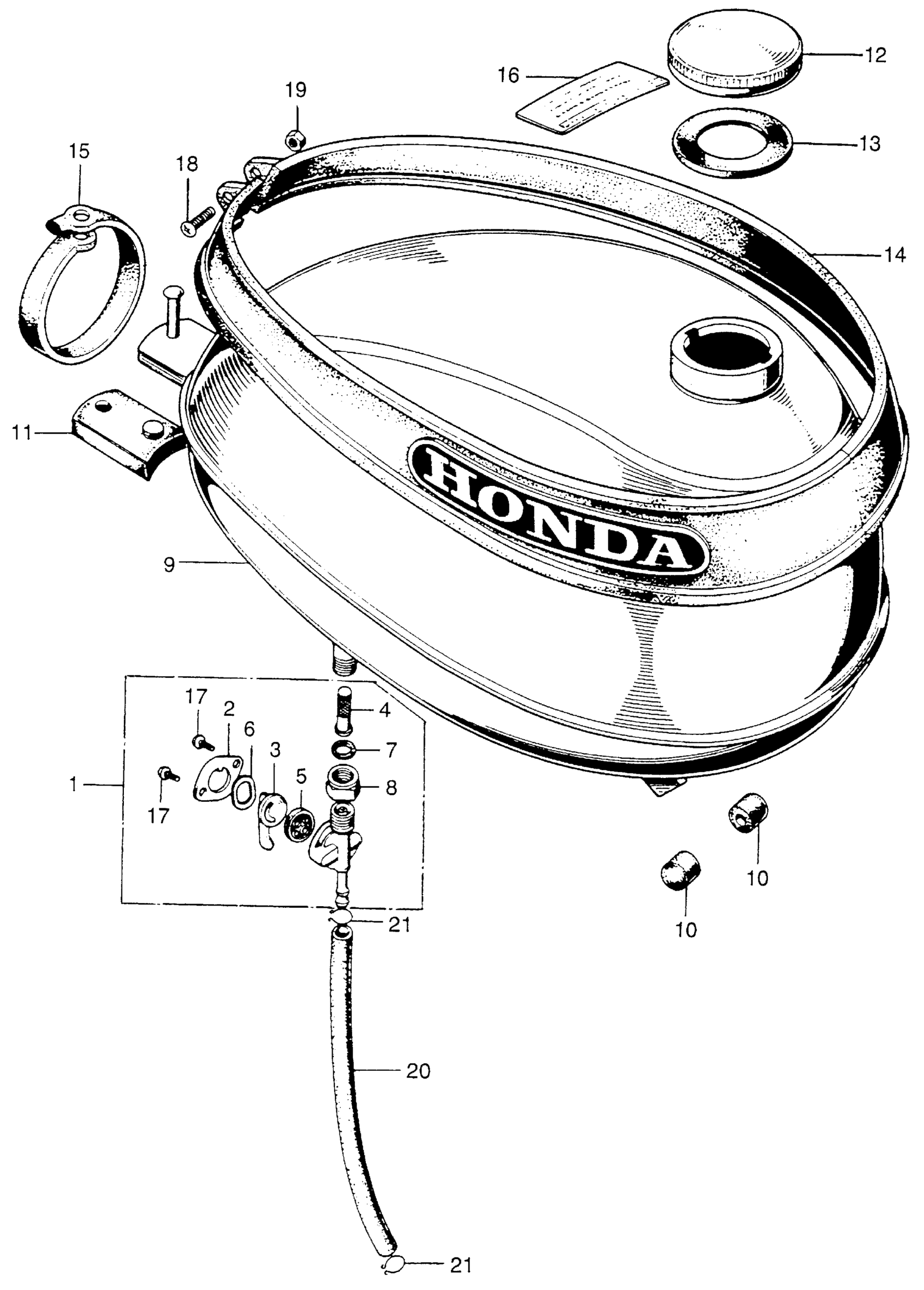 Honda QA50A MOTORCYCLE, JPN, VIN# QA50-1000001 FUEL TANK K Diagram