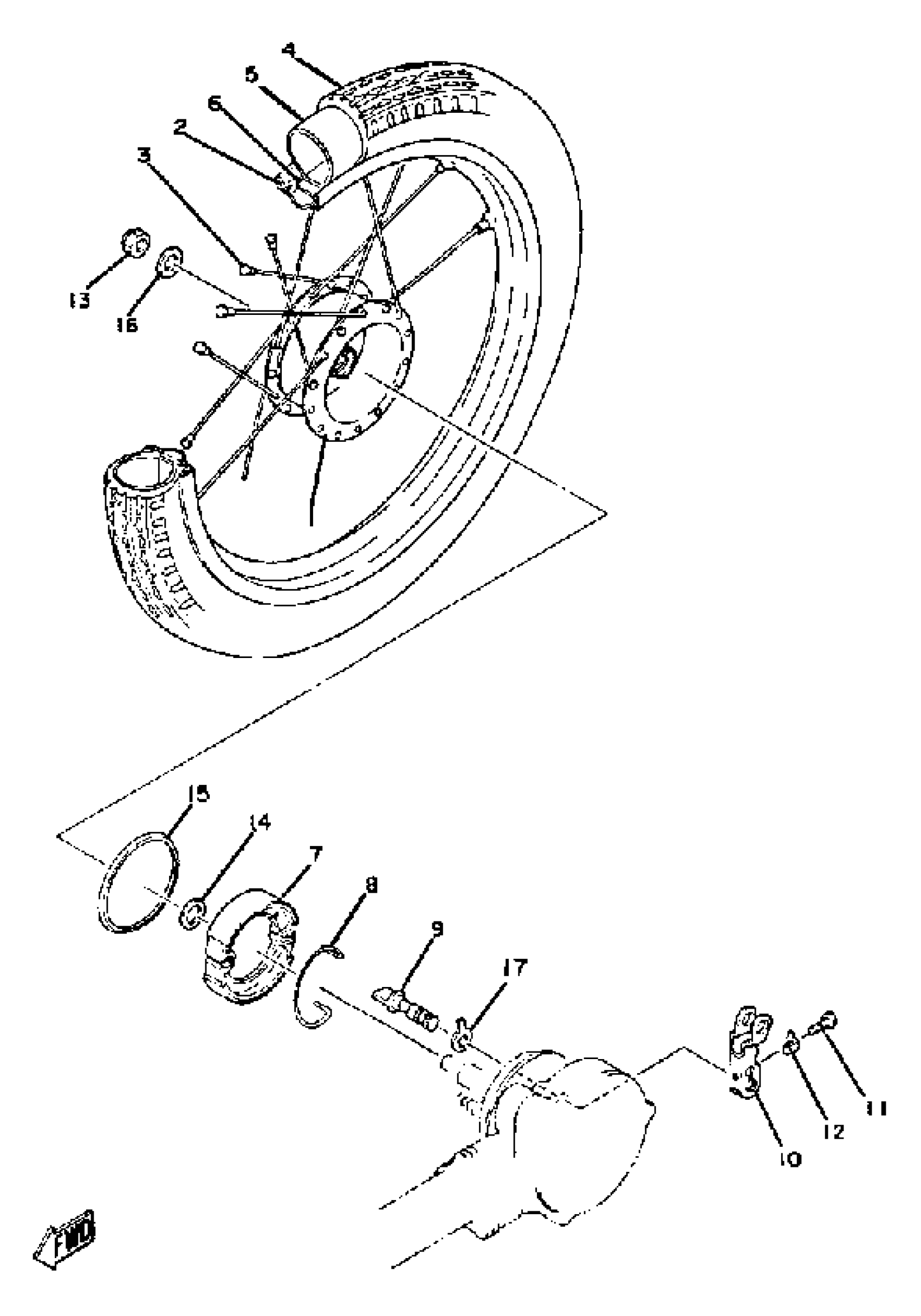 Yamaha QT50J (QT50) 1982 REAR WHEEL Diagram
