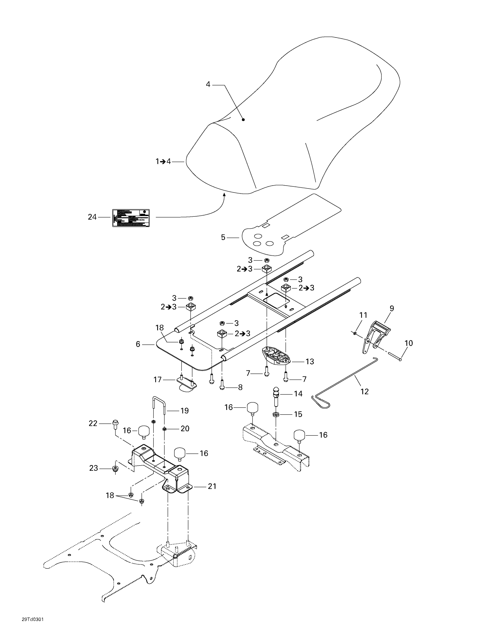 Seat ass'y | Includes 1 - 4.