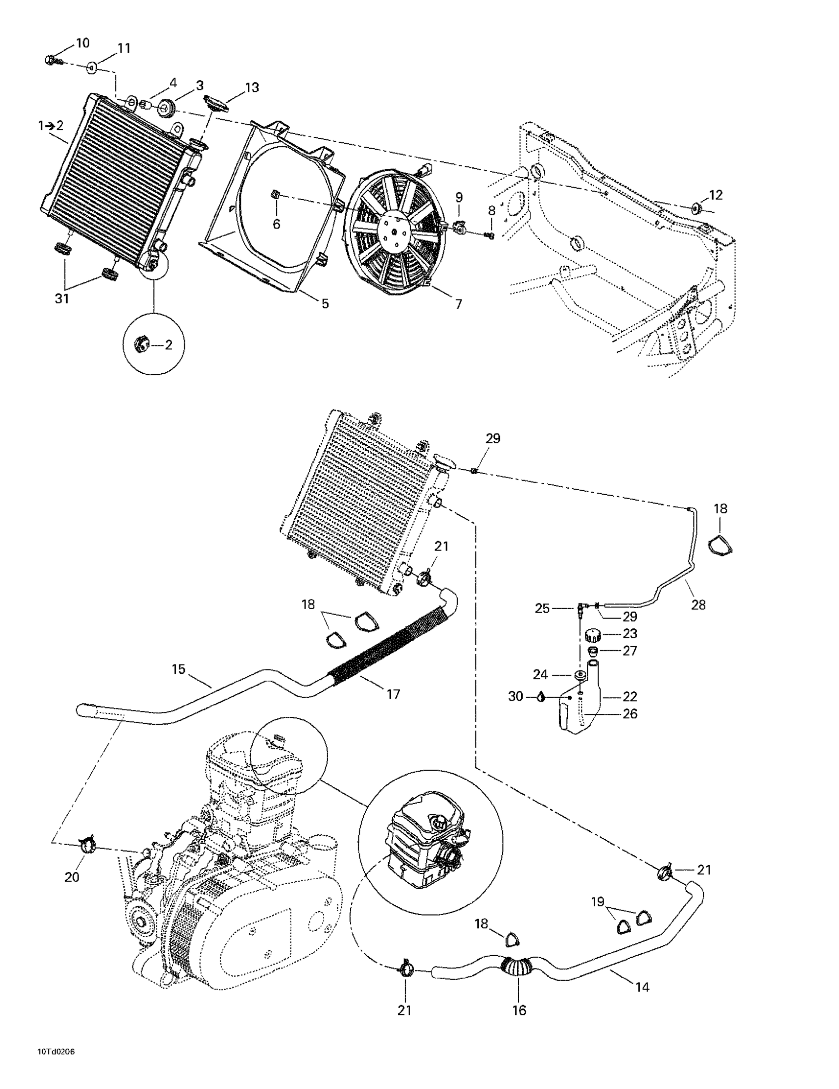 Radiator ass'y | Includes 1 - 2.