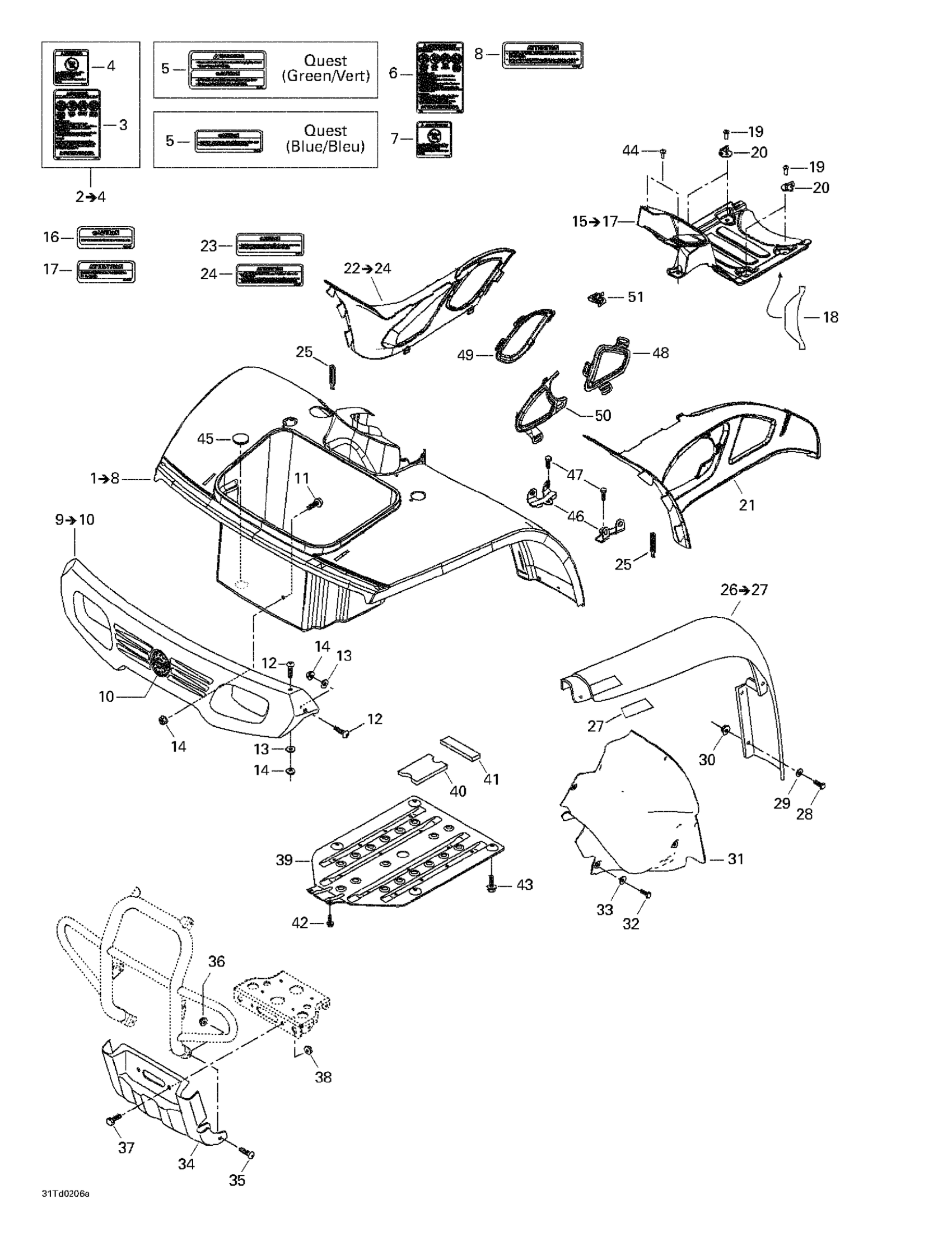 Can-Am Quest, Green/vert, 2002 Body And Accessories, Front View Diagram