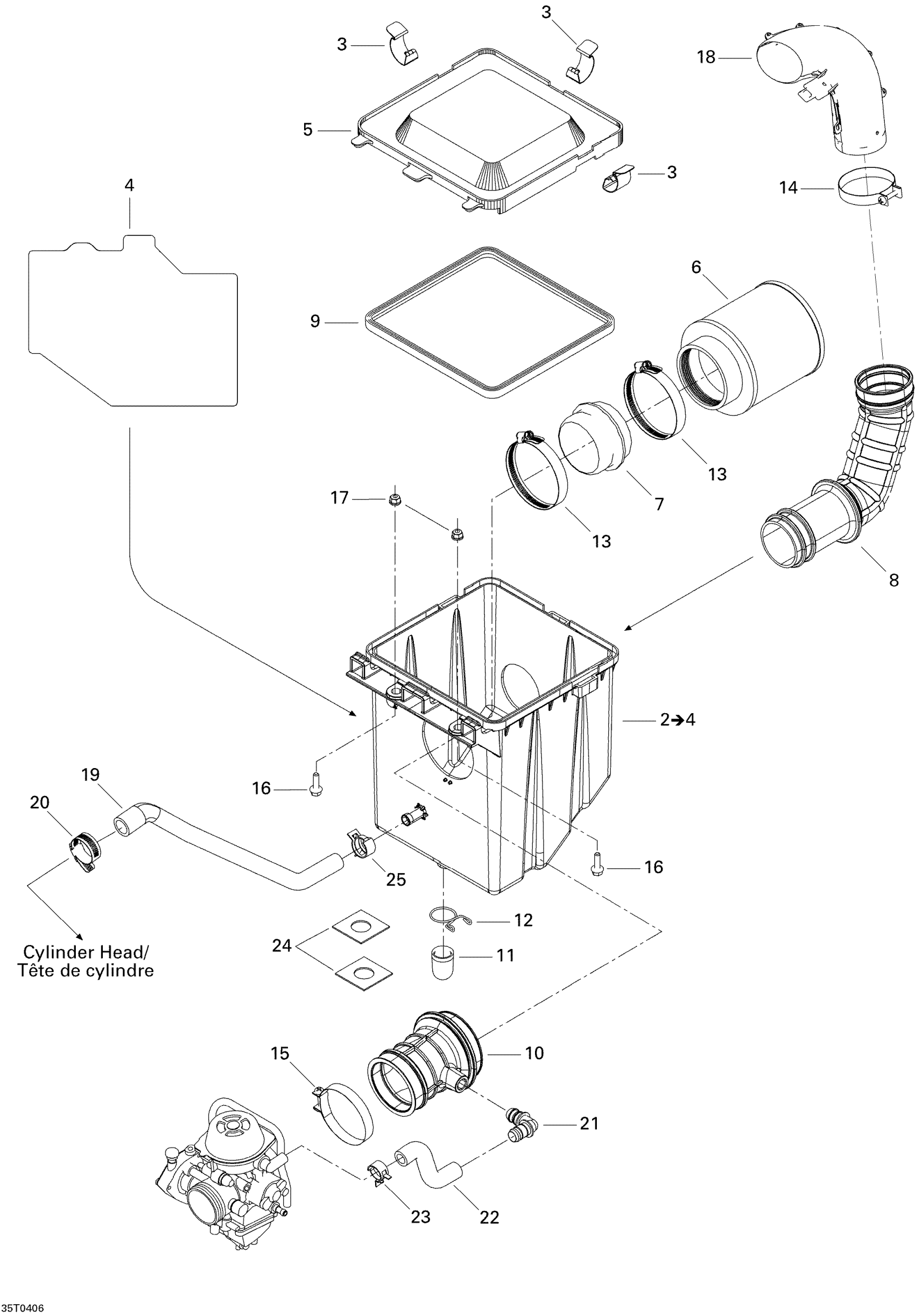 INTAKE SILENCER - Call your local BRP dealership | Includes Items 2 to 4