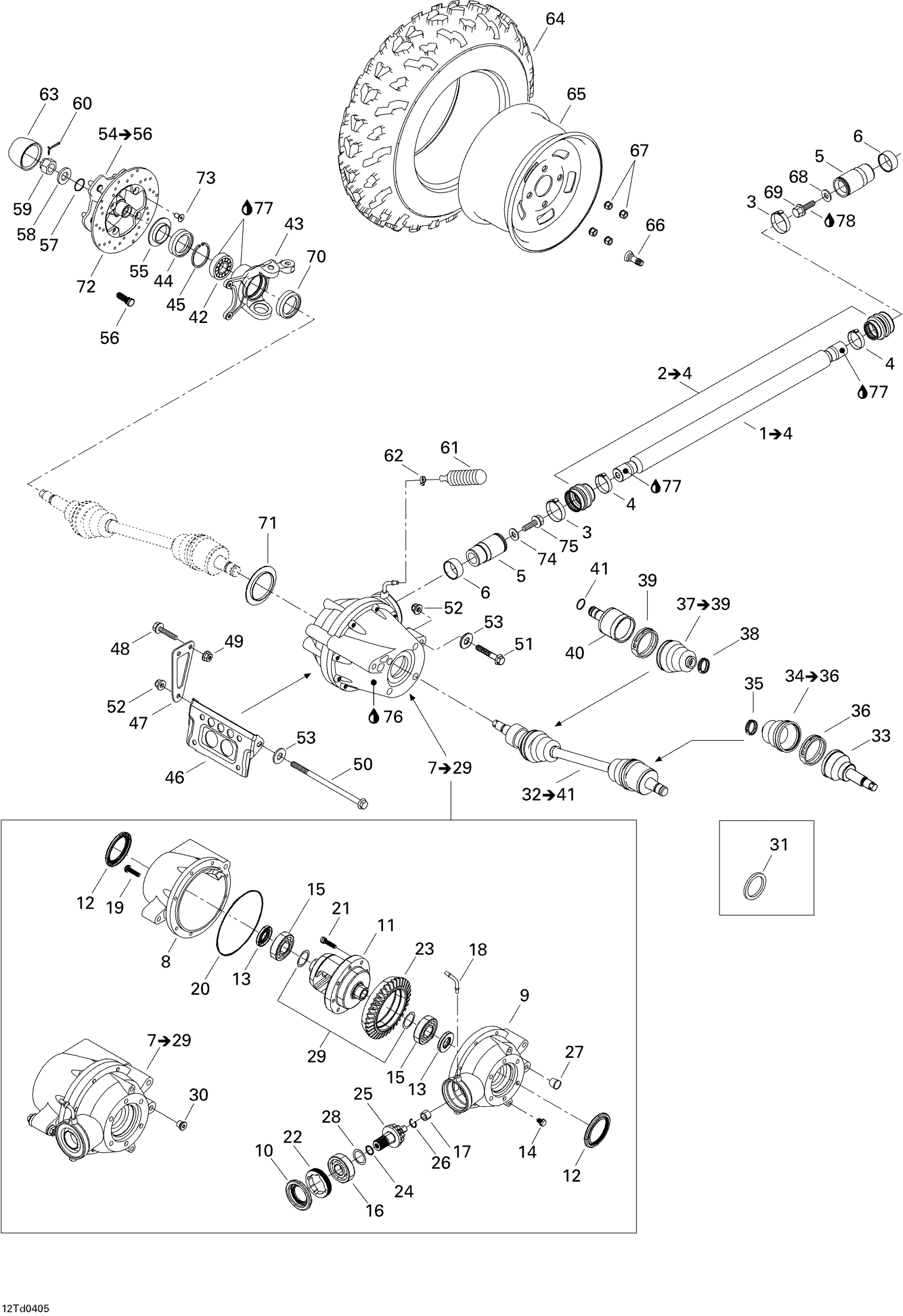 Front Differential Ass'y | Includes 7 to 29