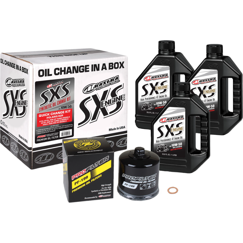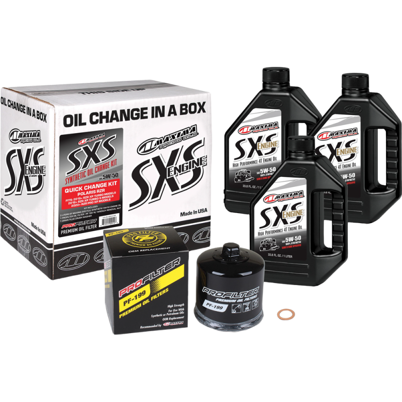 One of the few downsides to rapid advancements in engine technology is the sheer complexity of modern machines. Fortunately, Maxima has found a way to take the guesswork out of oil changes with our revolutionary SXS Oil Change Kits. Each kit provides the proper amount of engine oil specifically formulated for your exact model, along with a premium replacement oil filter, all of which is designed to get you out of the garage and back in the seat sooner. Maxima SxS Full Synthetic engine oil is an ester-fortified 4-stroke engine oil specifically formulated for side-by-side (SxS) engines. Synthetic, oxidatively-stable formulation combines surface-active esters with a shear-stable polymer system to provide excellent film thickness and viscosity stability across all operating temperatures. Advanced, proprietary additive system reduces temperatures and increases power output while keeping your engine running clean, trouble-free and extending the life of the machine. Exceeds the requirements of API SL / JASO MA2. ProFilter Premium Spin-On Oil Filters feature M-Pleat technology, a structural paper design allowing for larger filtration area and greater capacity to hold contaminants, extending filter life by 20-30%. Silicone Anti-Drain Back Valve to allow optimum oil pressure to be obtained quickly, reducing the time for oil to reach critical areas at start-up. 17 MM Hex Wrench Removal Nut come standard for easy removal and pre-drilled for safety wiring. 100% Leak tested. Pre-lubricated gasket to ensure optimum seal to the engine. Meets or exceeds all manufacturers' specifications and will not void your new vehicle warranty.