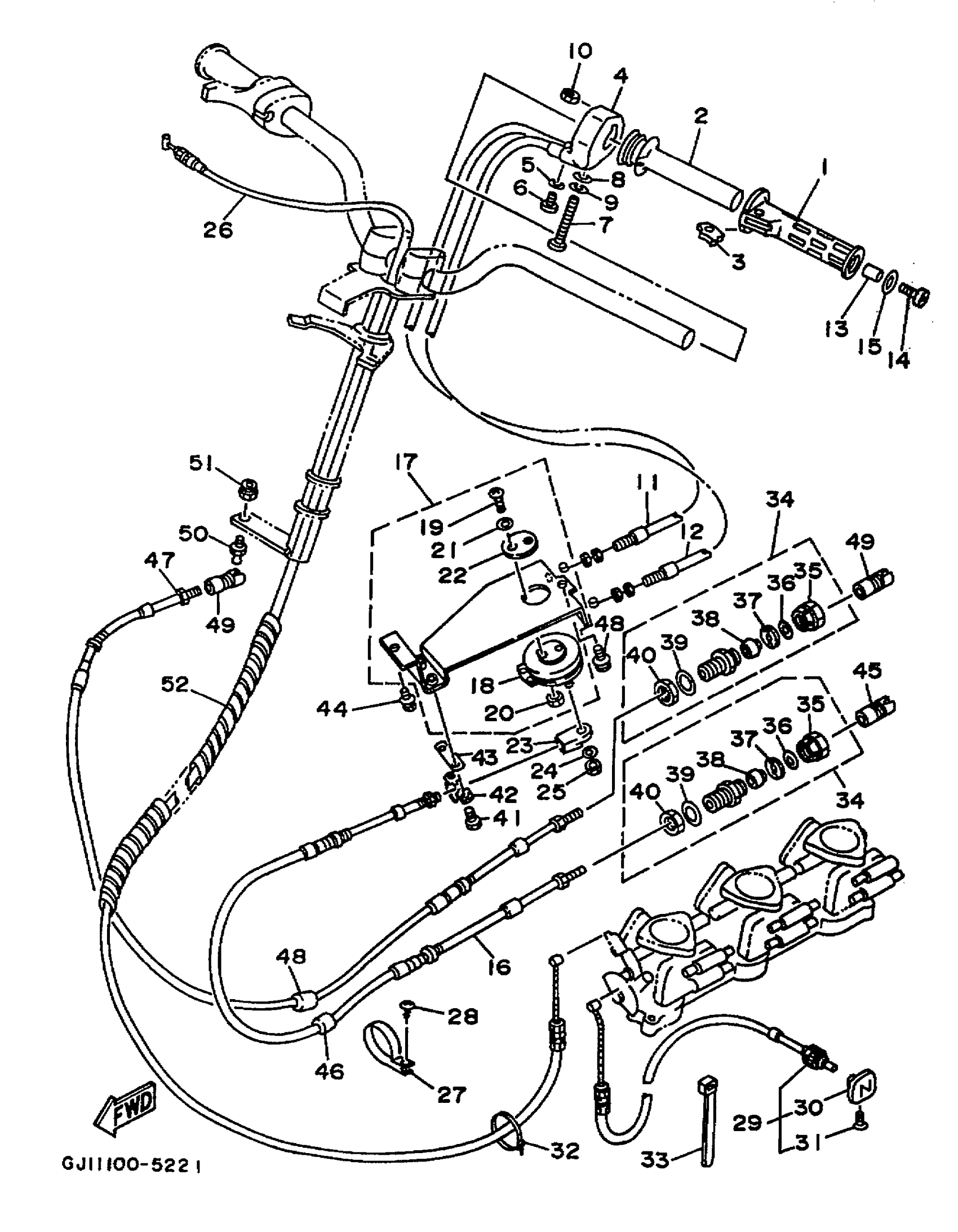 Yamaha RA1100T (WAVE RAIDER 1100) 1995 CONTROL CABLE Diagram