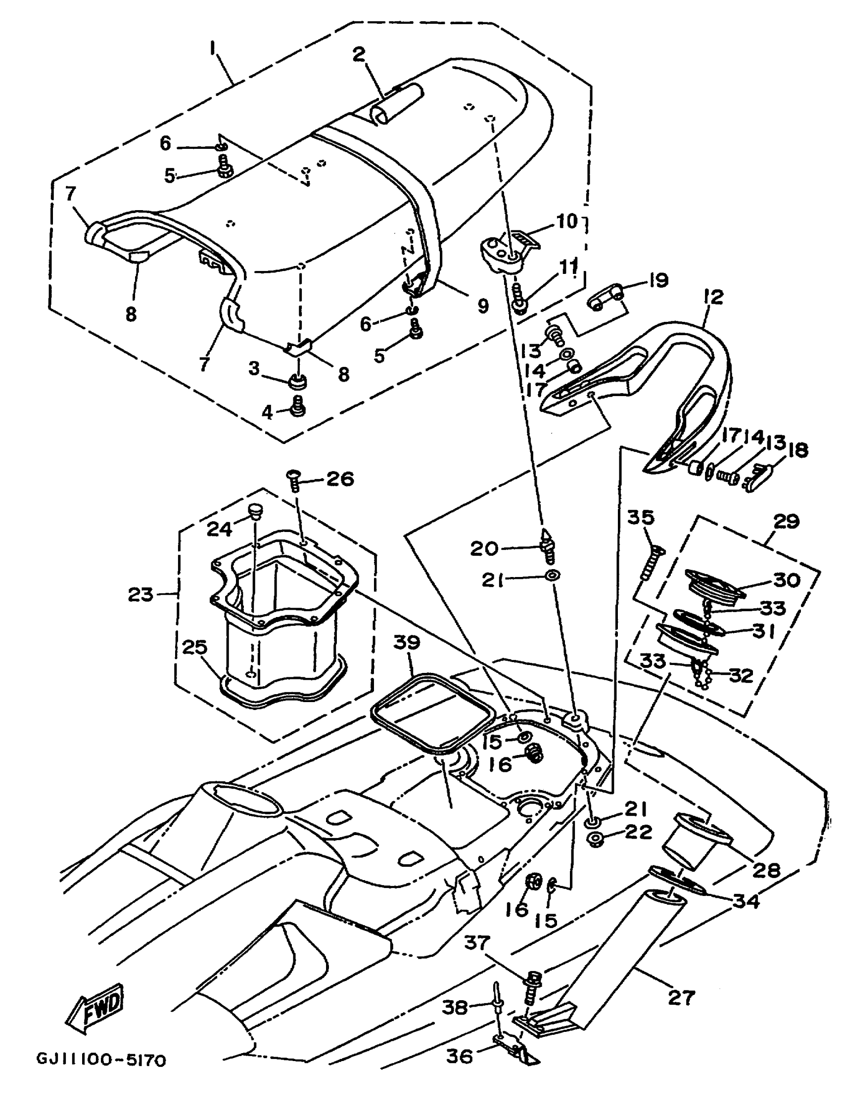 Yamaha RA1100T (WAVE RAIDER 1100) 1995 SEAT - UNDER LOCKER 1 Diagram