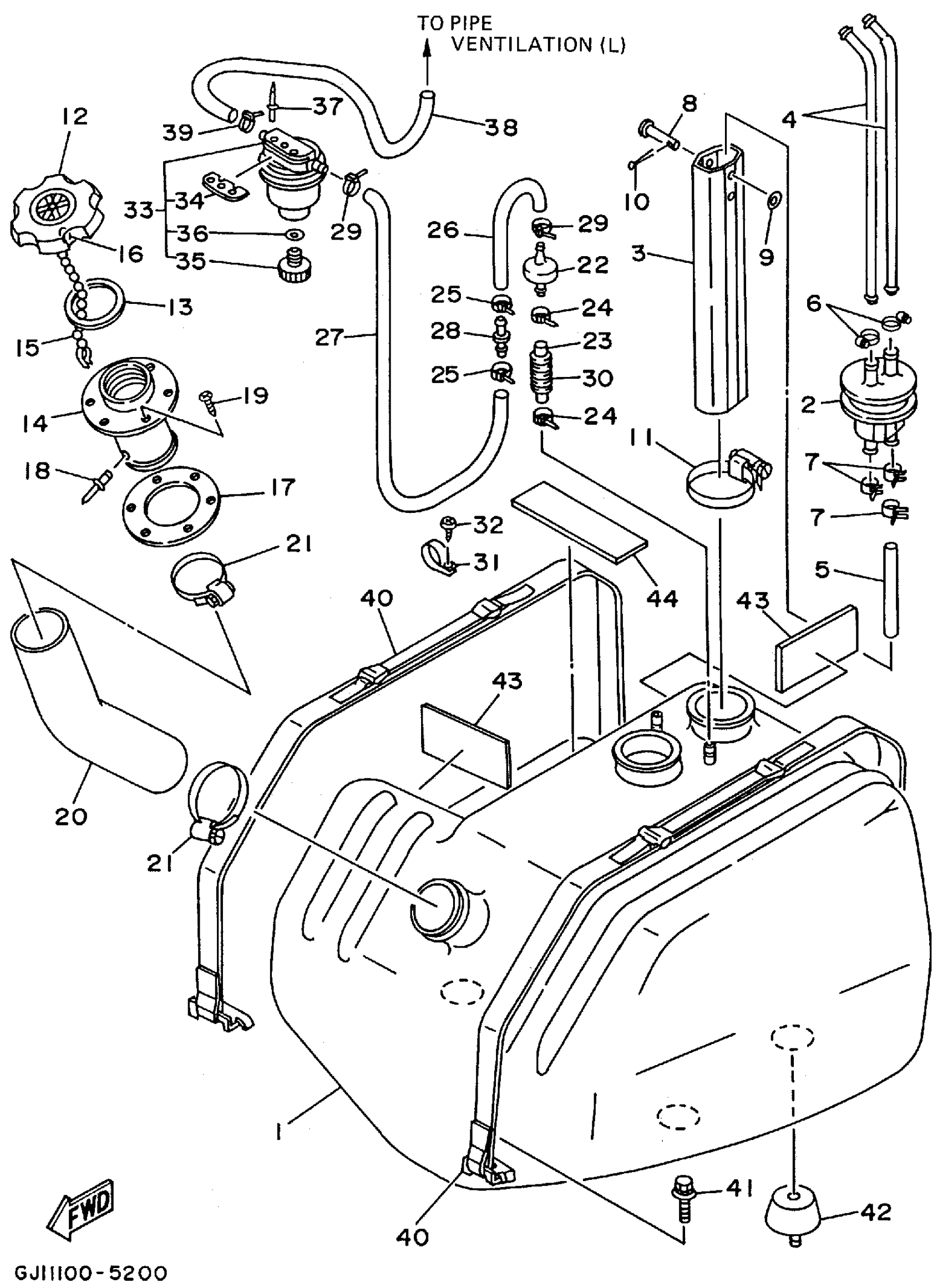 Yamaha RA700AT (WAVE RAIDER DELUXE) 1995 FUEL TANK Diagram