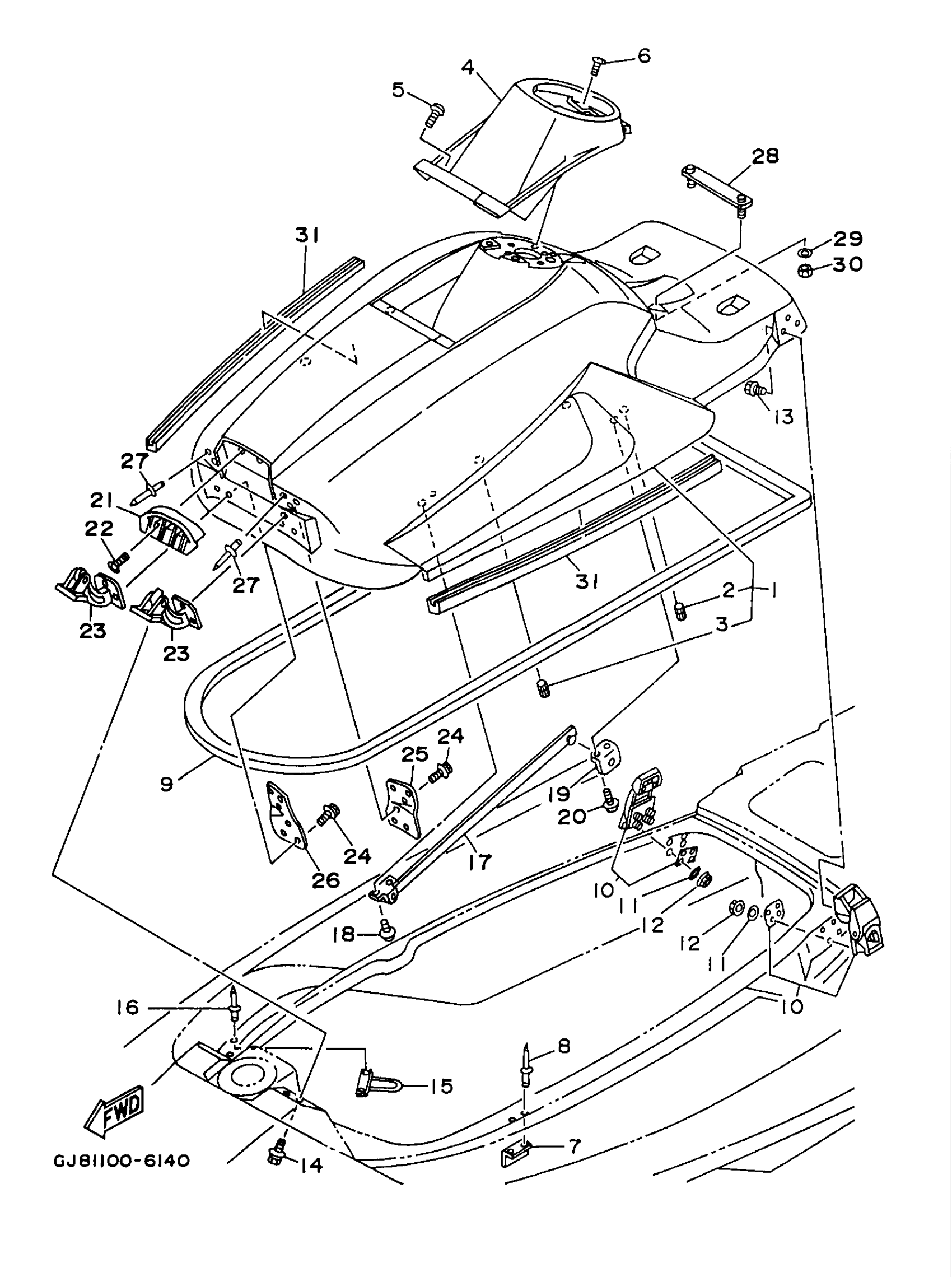 Yamaha RA700BV (WAVE RAIDER 700) GJ85 1997 ENGINE HATCH Diagram