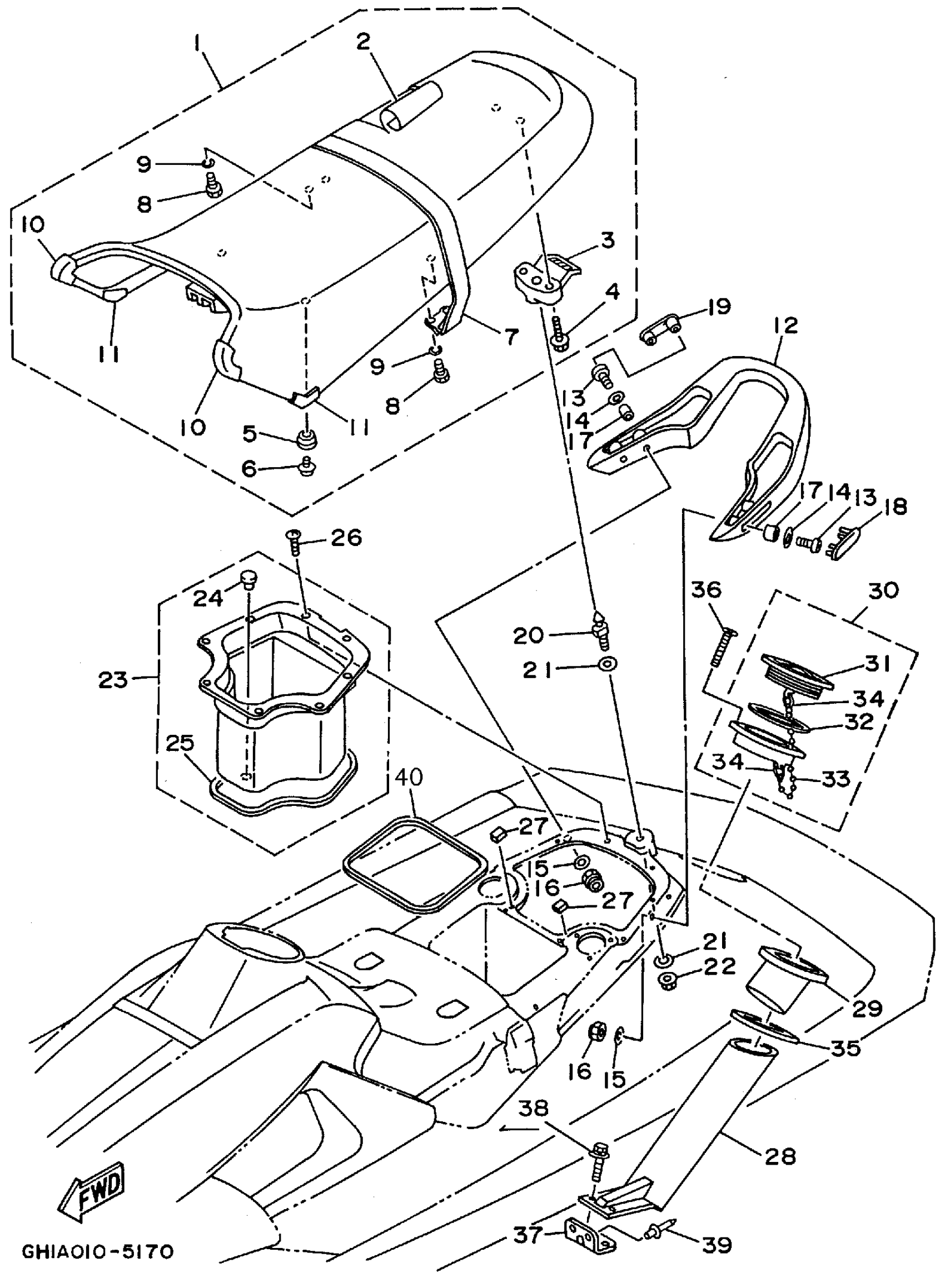 Yamaha RA700T (WAVE RAIDER) 1995 SEAT UNDER LOCKER 1 Diagram
