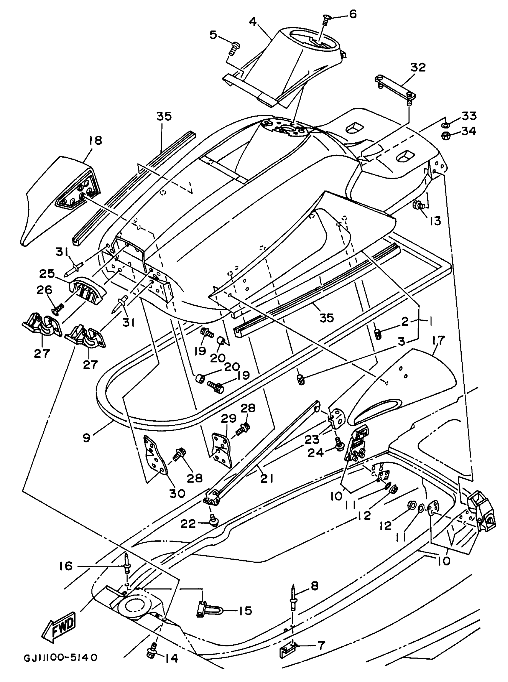 Yamaha RA760U (WAVE RAIDER 760) 1996 ENGINE HATCH Diagram