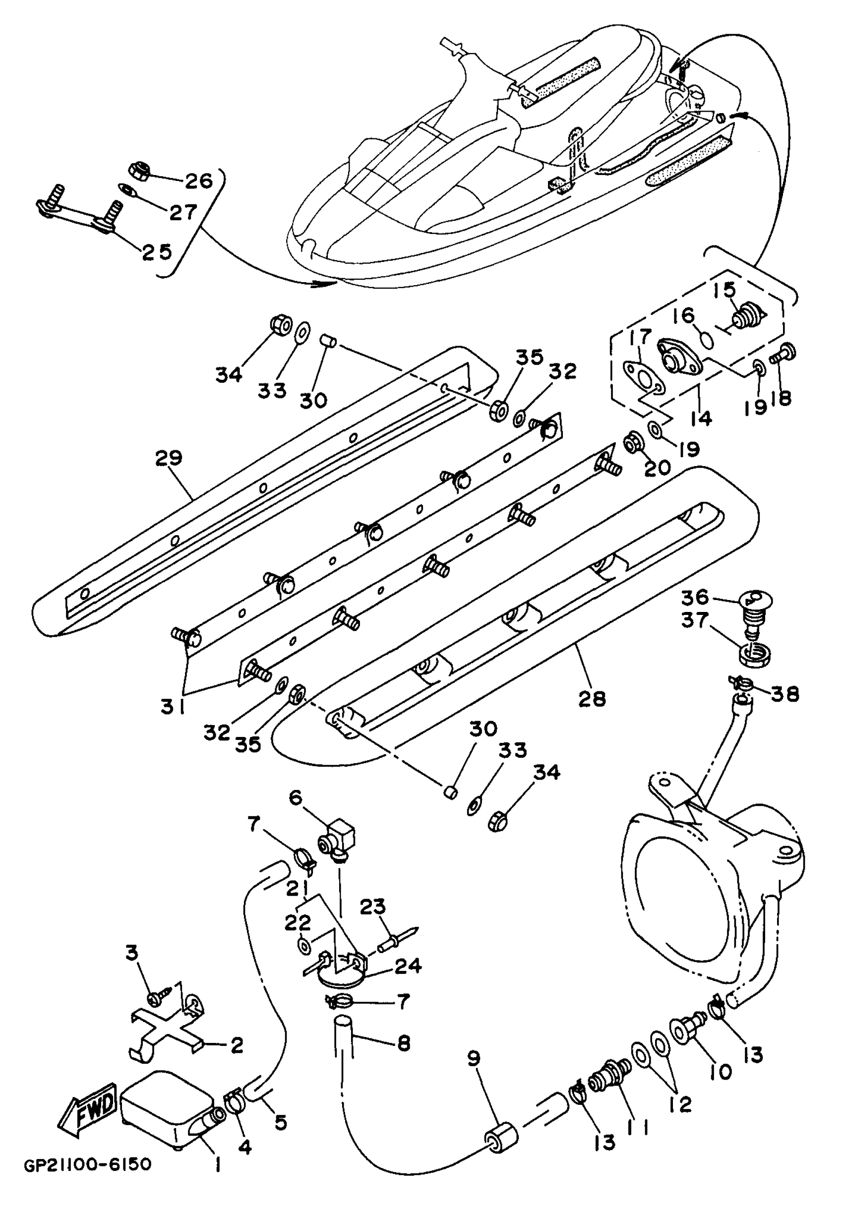 Yamaha RA760U (WAVE RAIDER 760) 1996 HULL - DECK Diagram
