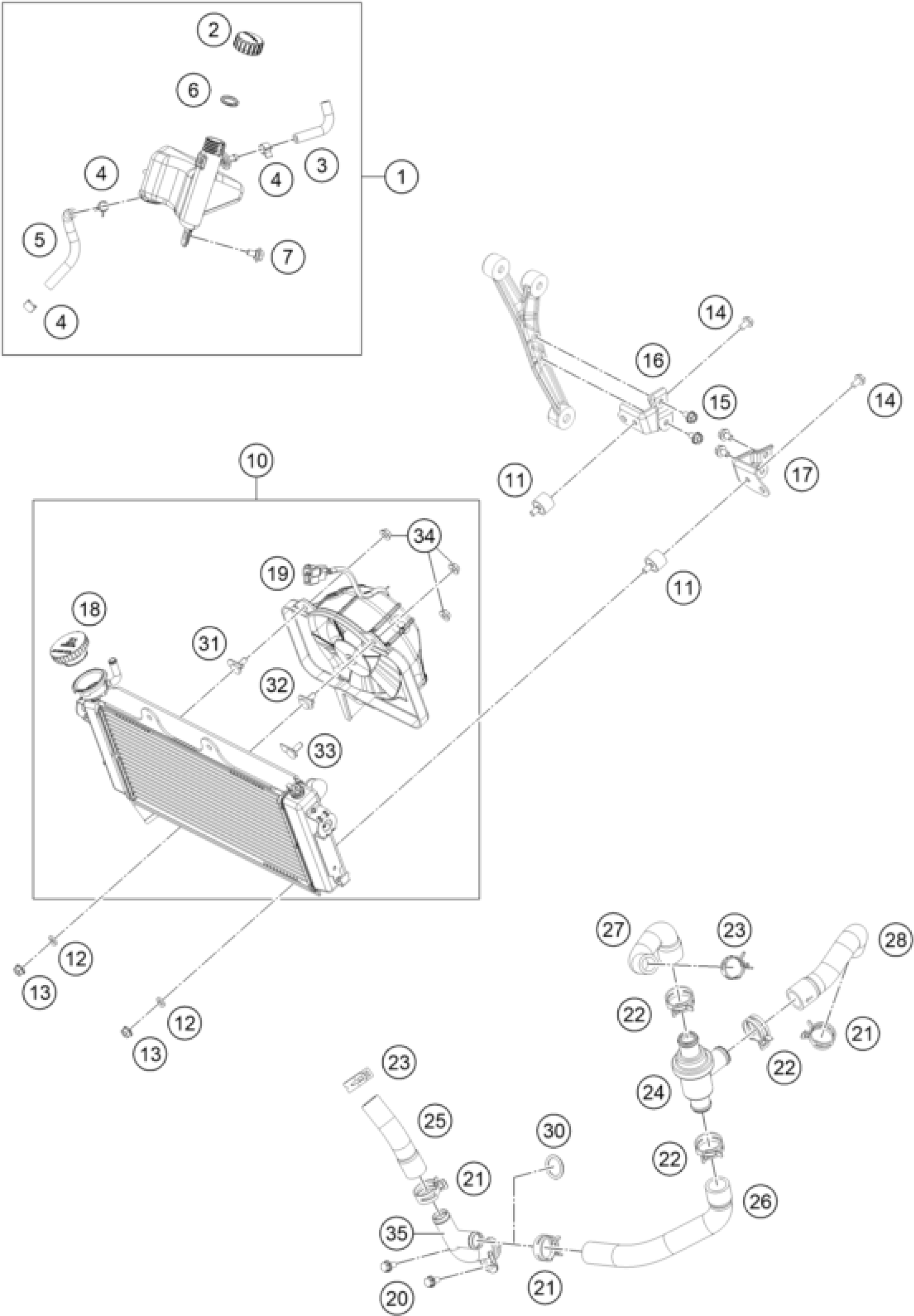 KTM RC 125 black / ABS 2014 COOLING SYSTEM Diagram