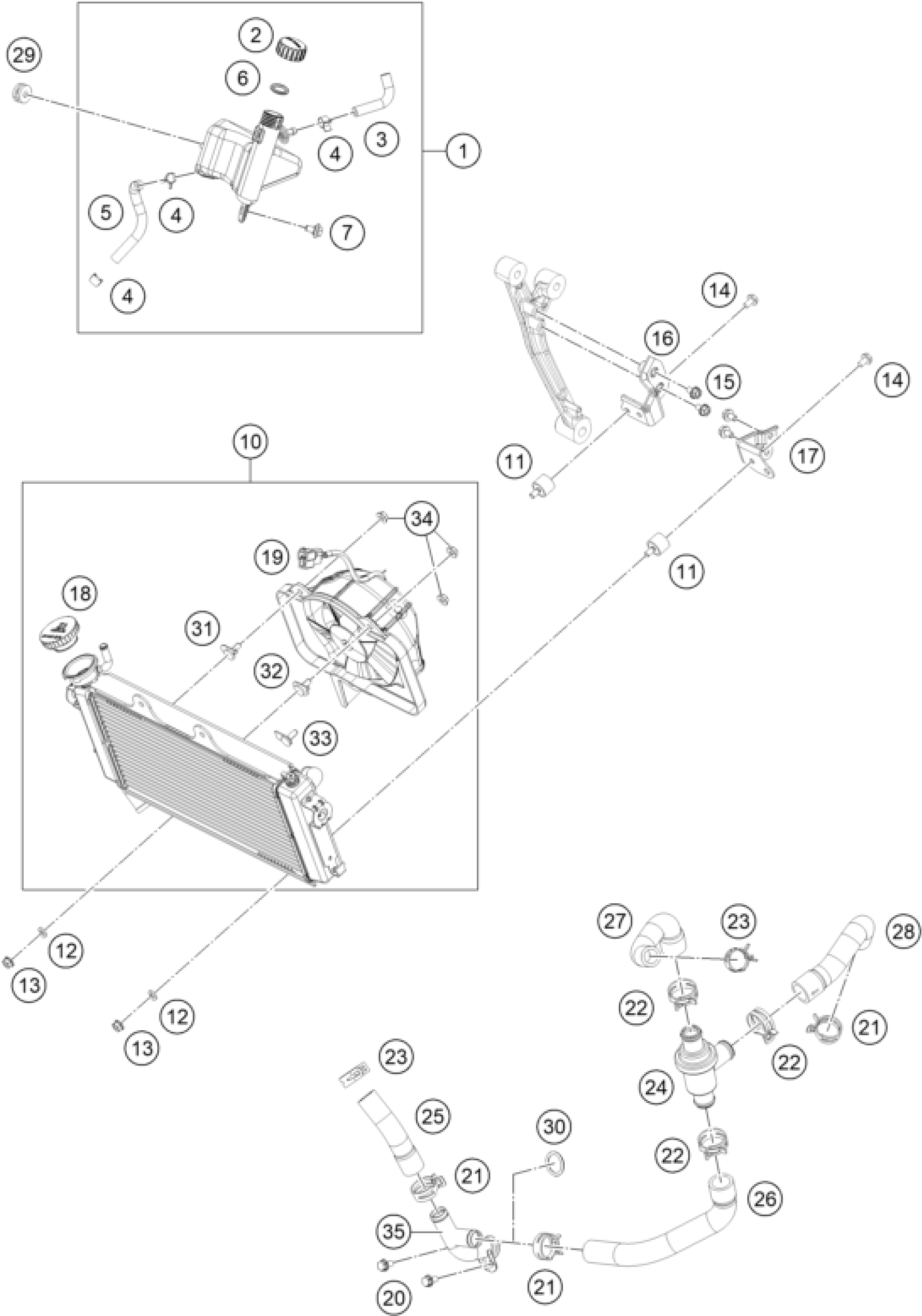 KTM RC 200, black, w/o ABS - B.D. 2020 COOLING SYSTEM Diagram