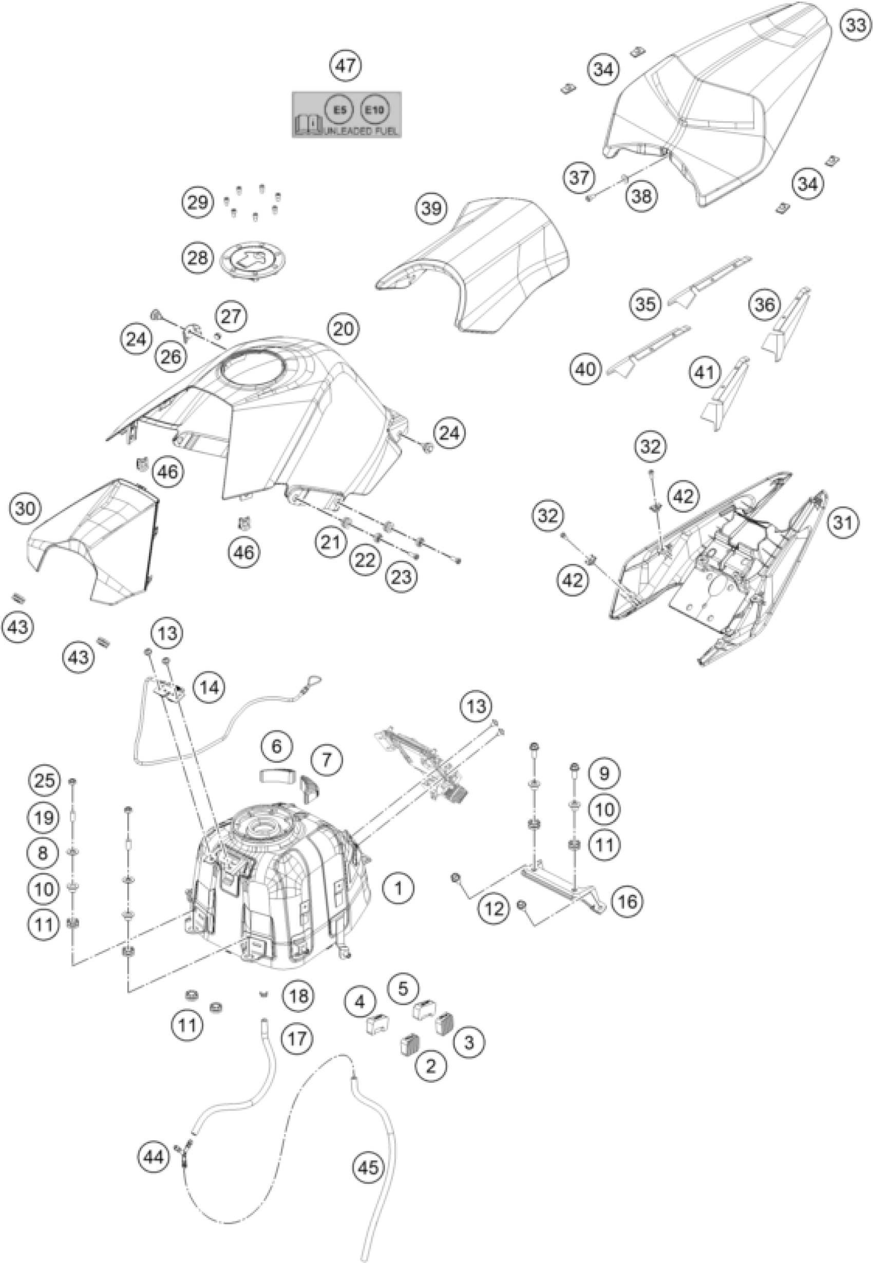 KTM RC 200, black, w/o ABS - B.D. 2020 TANK, SEAT Diagram