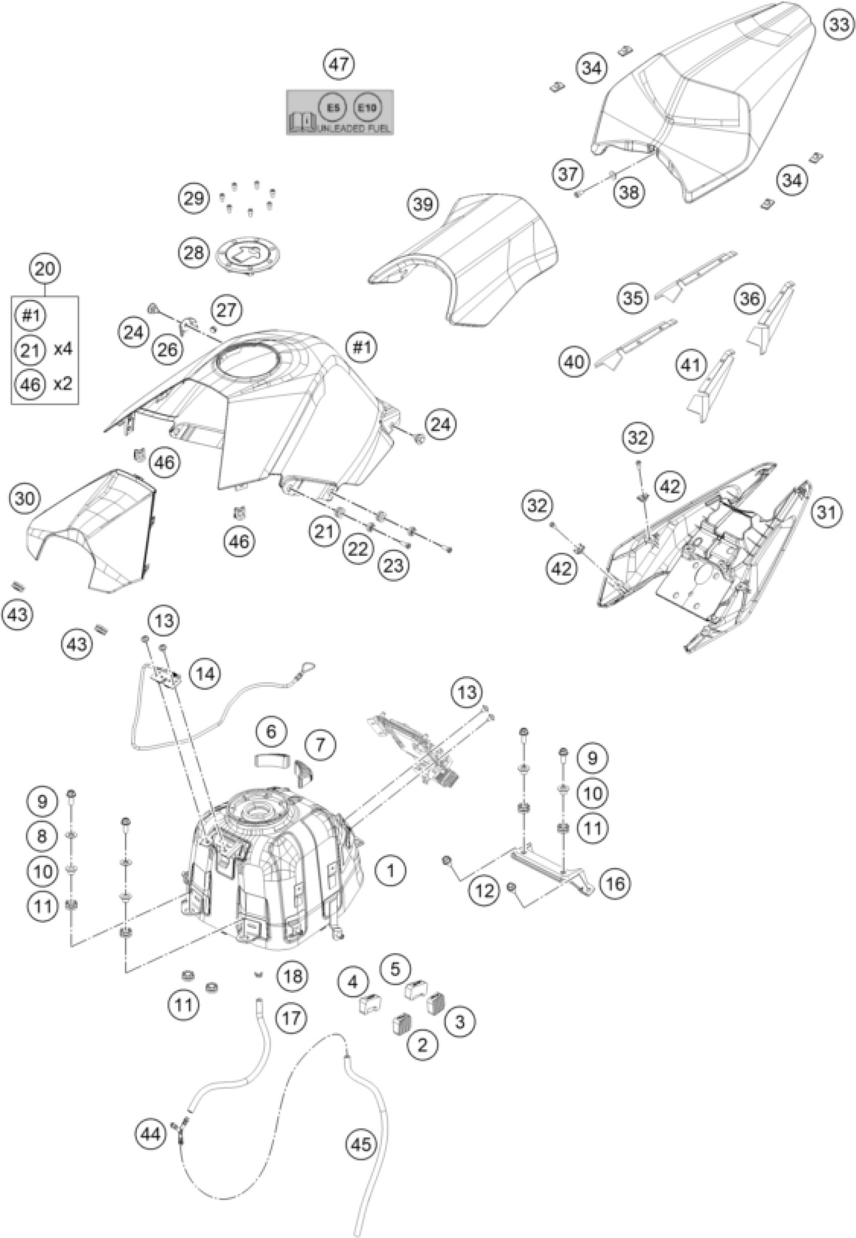 KTM RC 200, white, w/o ABS 2019 TANK, SEAT Diagram