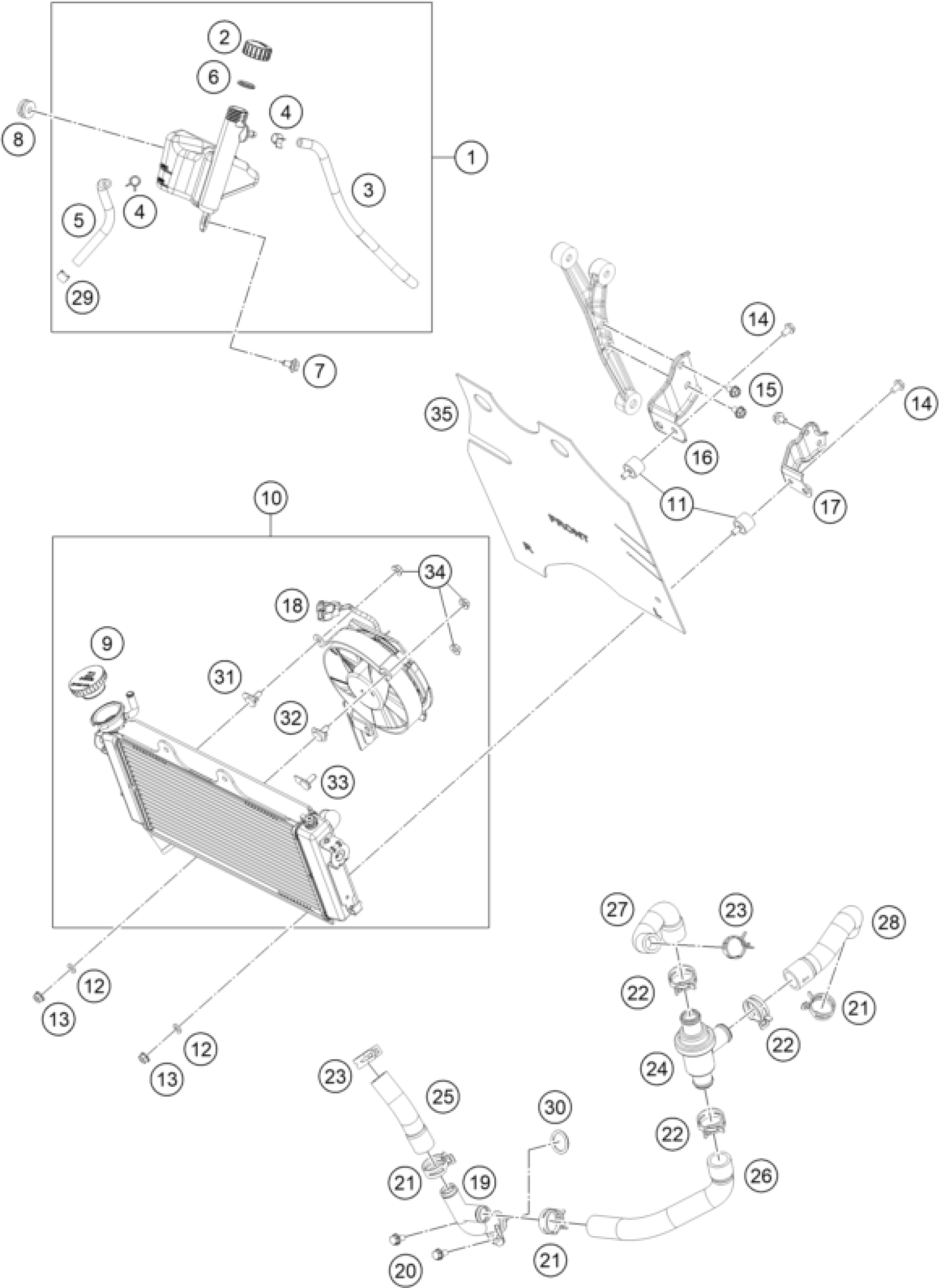 KTM RC 390, white 2020 COOLING SYSTEM Diagram
