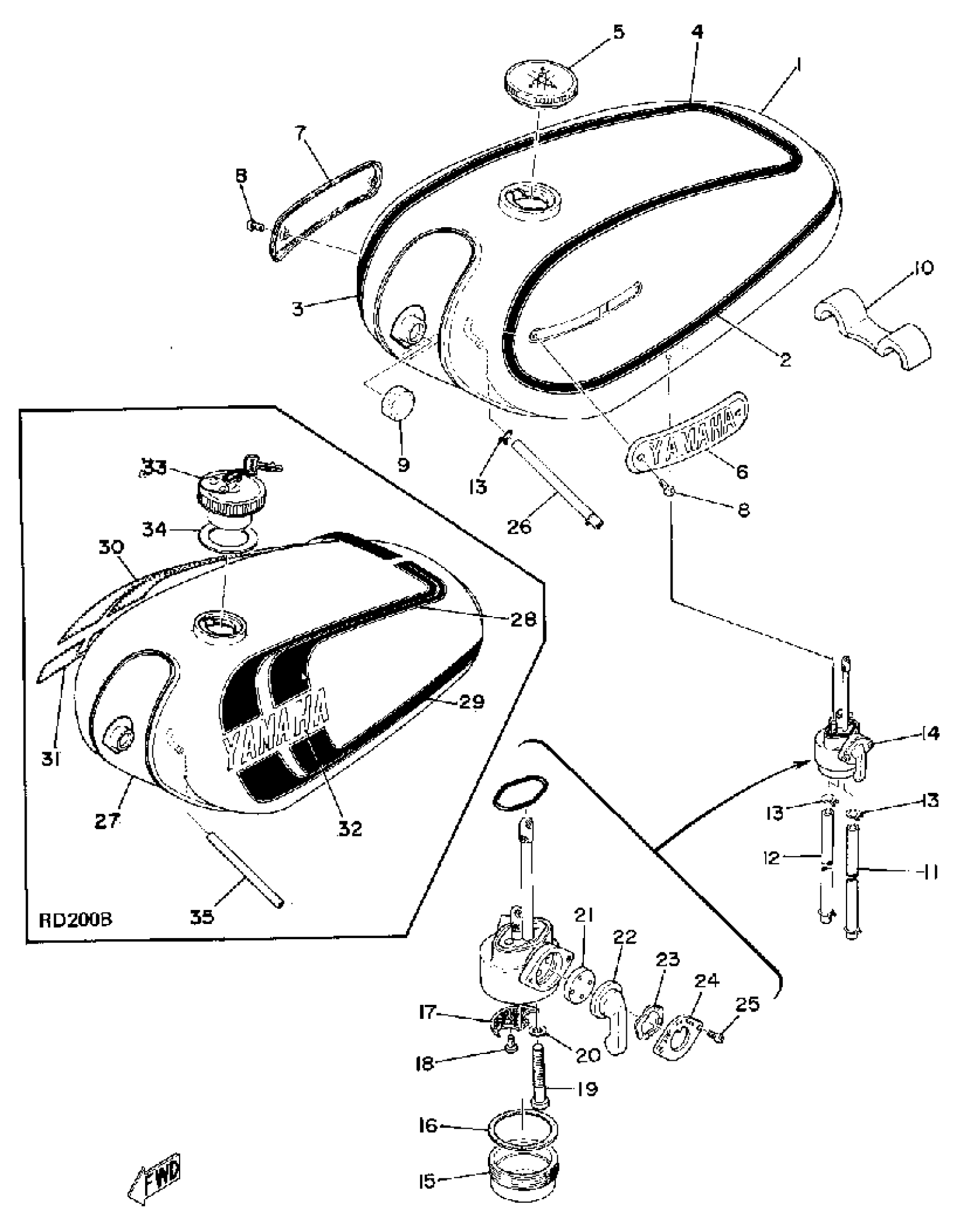 Yamaha RD200A (RD200) 1974 FUEL TANK Diagram