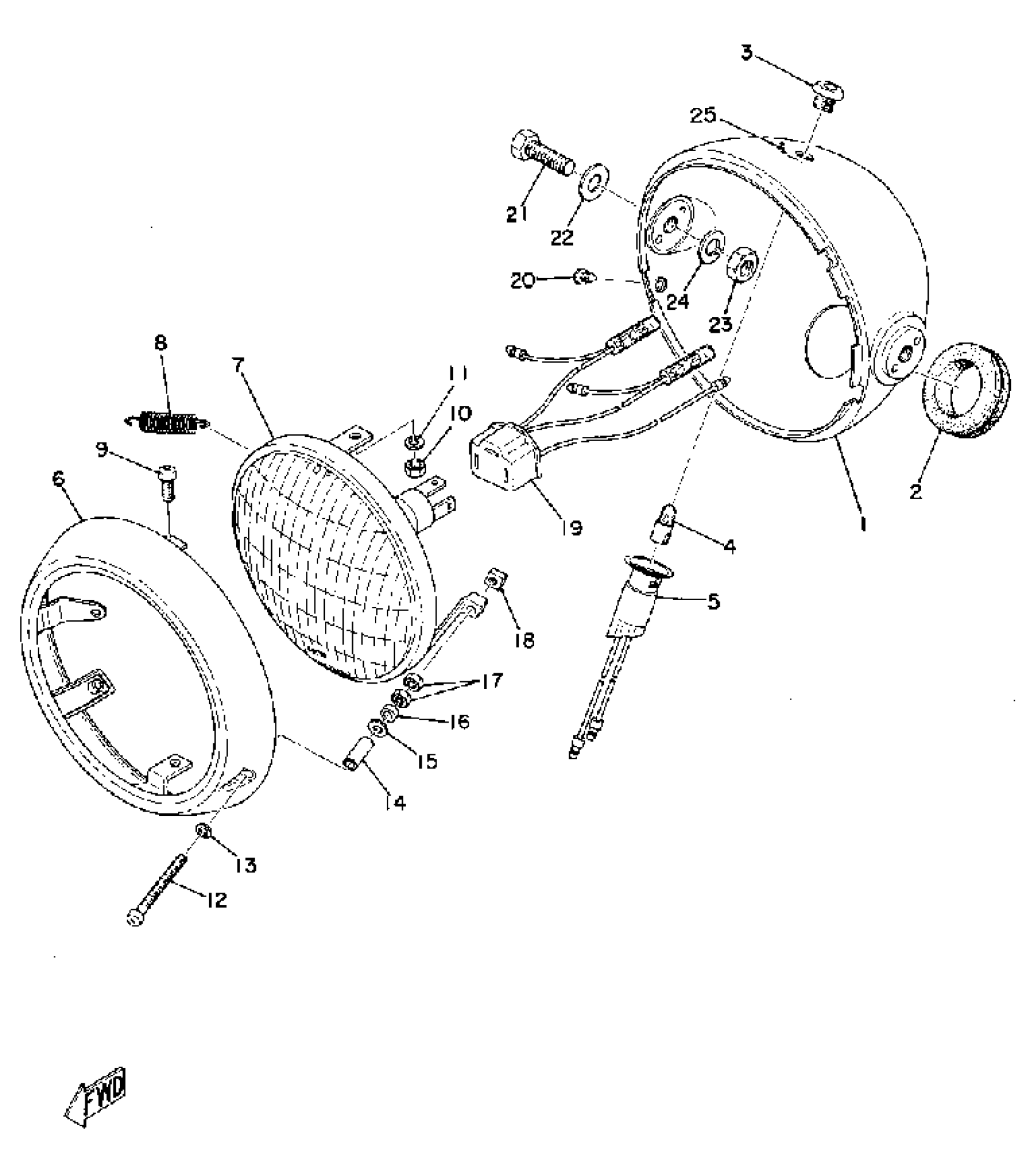 Yamaha RD200A (RD200) 1974 HEAD LAMP Diagram