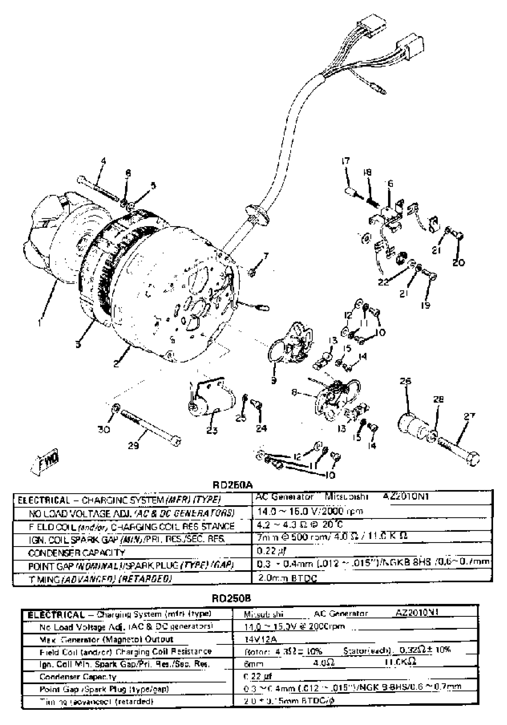 Yamaha RD250 (RD250) 1973 AC GENERATOR Diagram