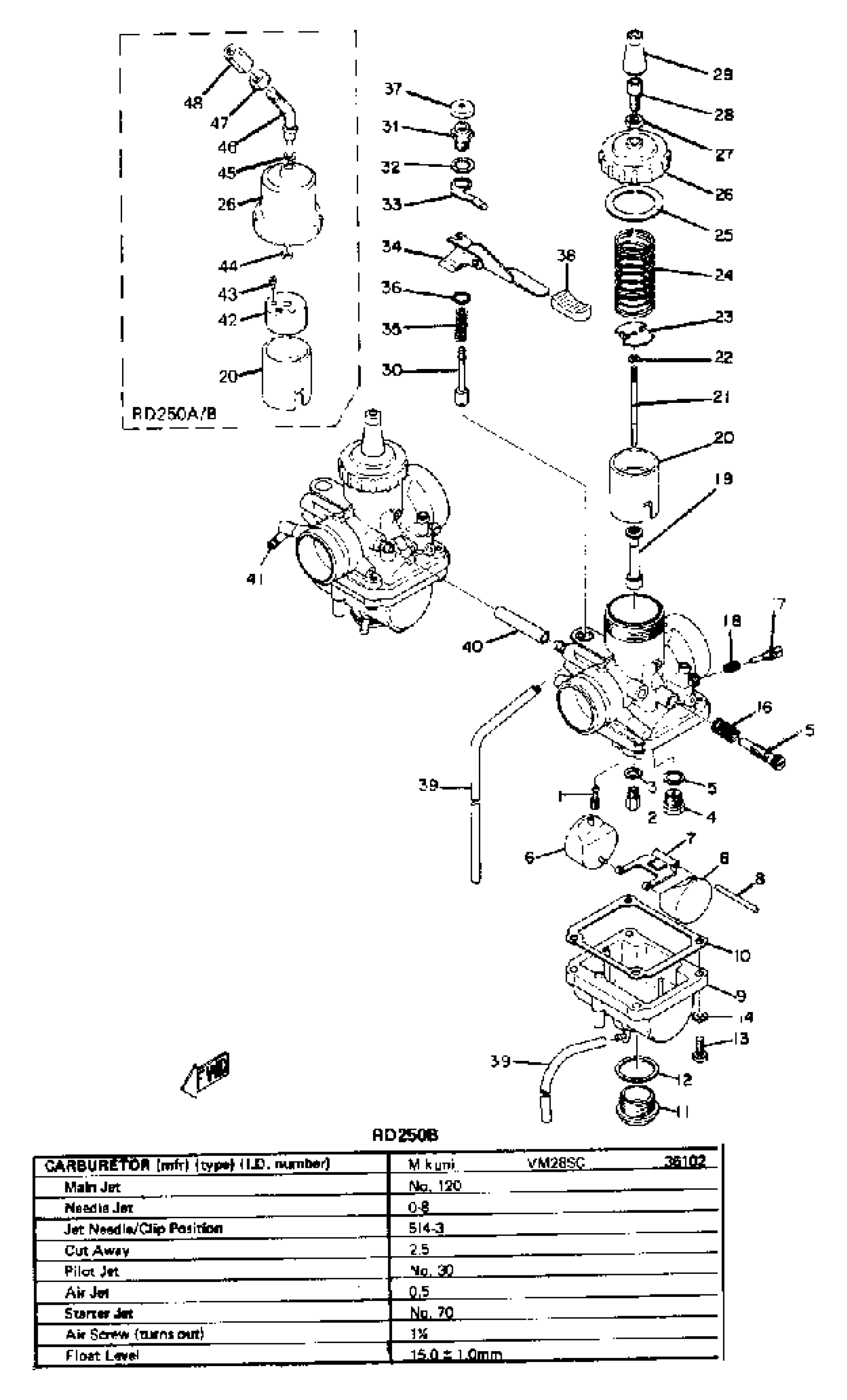 Yamaha RD250 (RD250) 1973 CARBURETOR Diagram