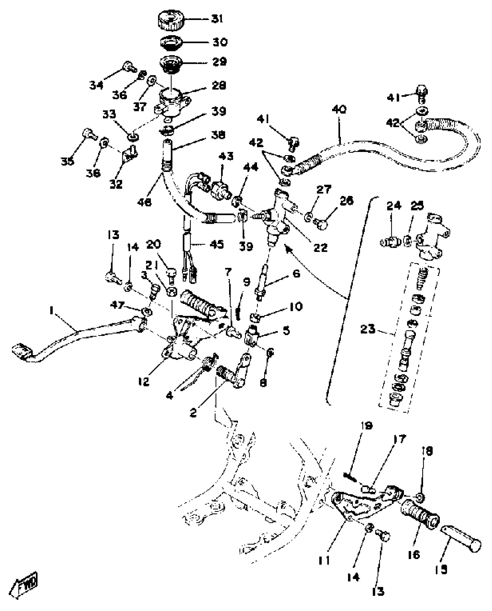 Yamaha RD400E (RD400) 1978 BRAKE PEDAL MASTER CYLINDER Diagram