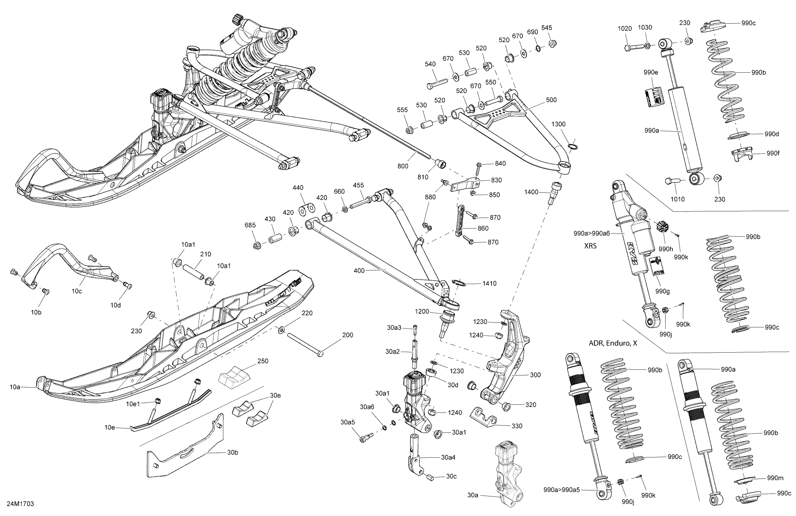 Ski-Doo RENEGADE - 2-STROKE - 600HO E-TEC, 2017 Front Suspension And Ski Diagram