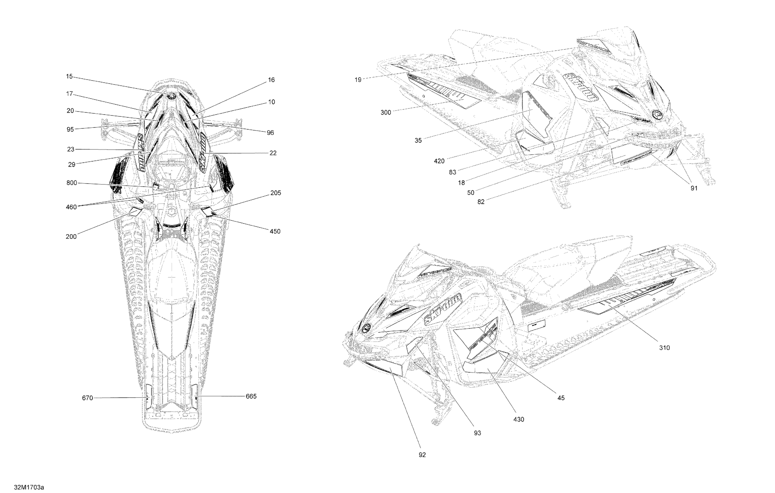 Ski-Doo RENEGADE - 2-STROKE - 600HO E-TEC, 2017 09- Decals - Package XRS Diagram