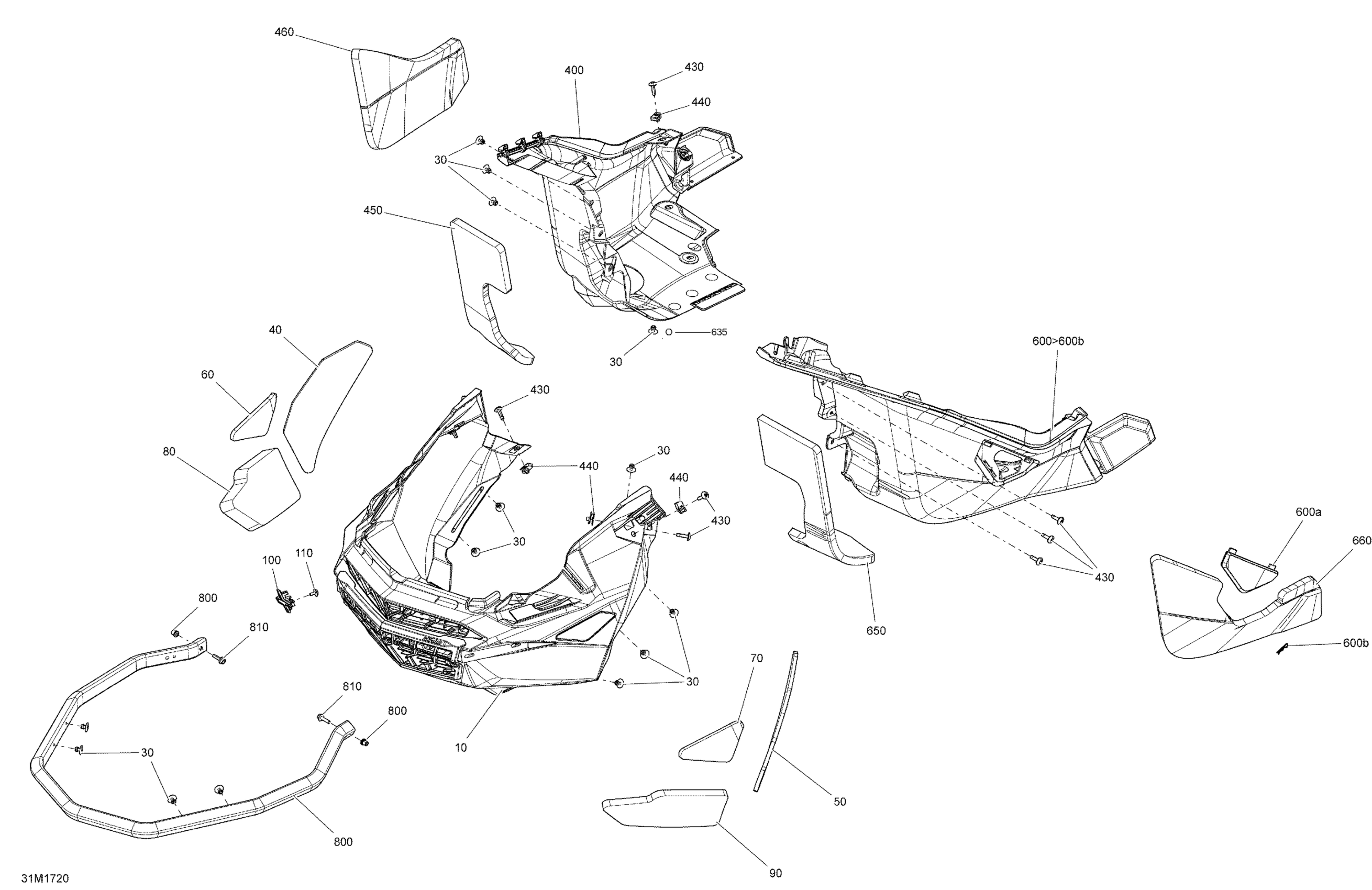 Ski-Doo RENEGADE - 2-STROKE - 850 E-TEC, 2017 Bottom Pan - All Models Diagram