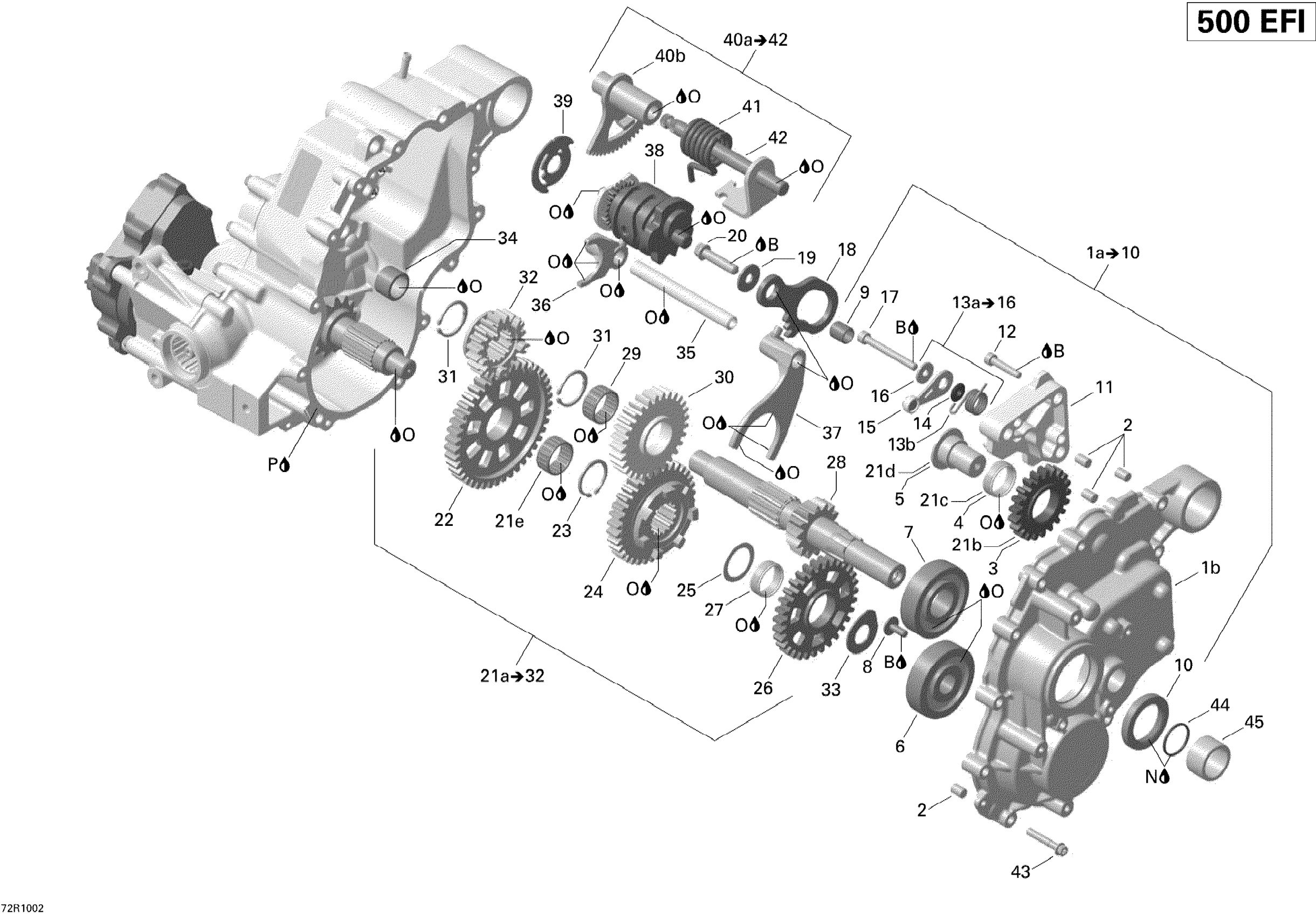 Can-Am Renegade 500 EFI, 2010 Gear Box And Components Diagram