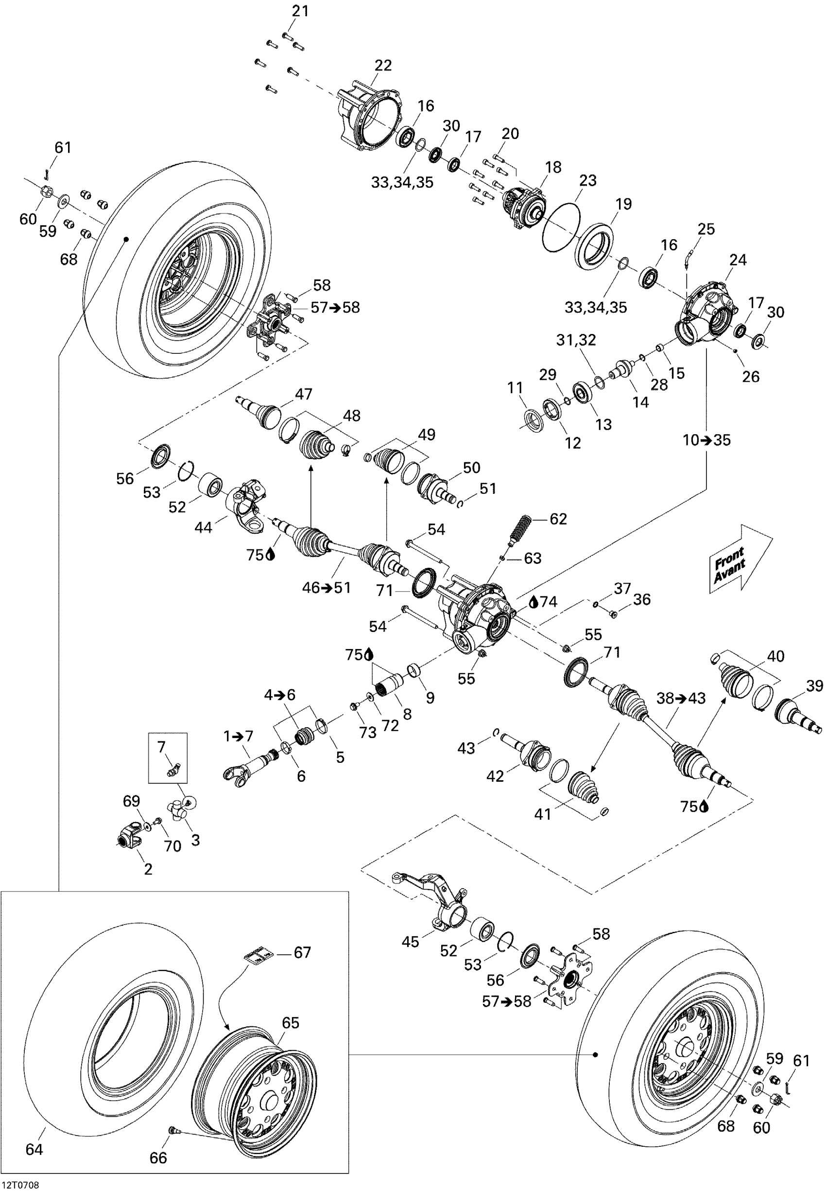 Can-Am Renegade 800 EFI, 2007 Drive System, Front Diagram
