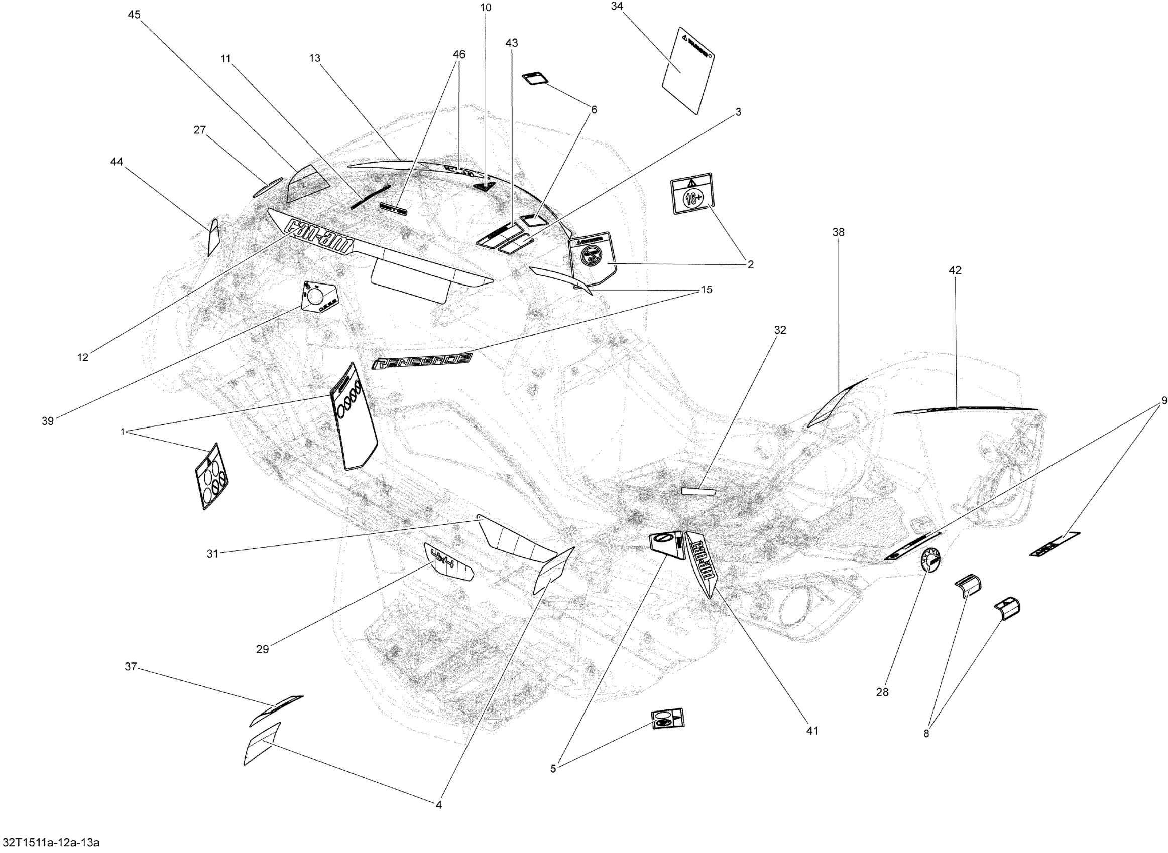Can-Am Renegade 800R EFI, 2015 Decals STD_32T1512a Diagram