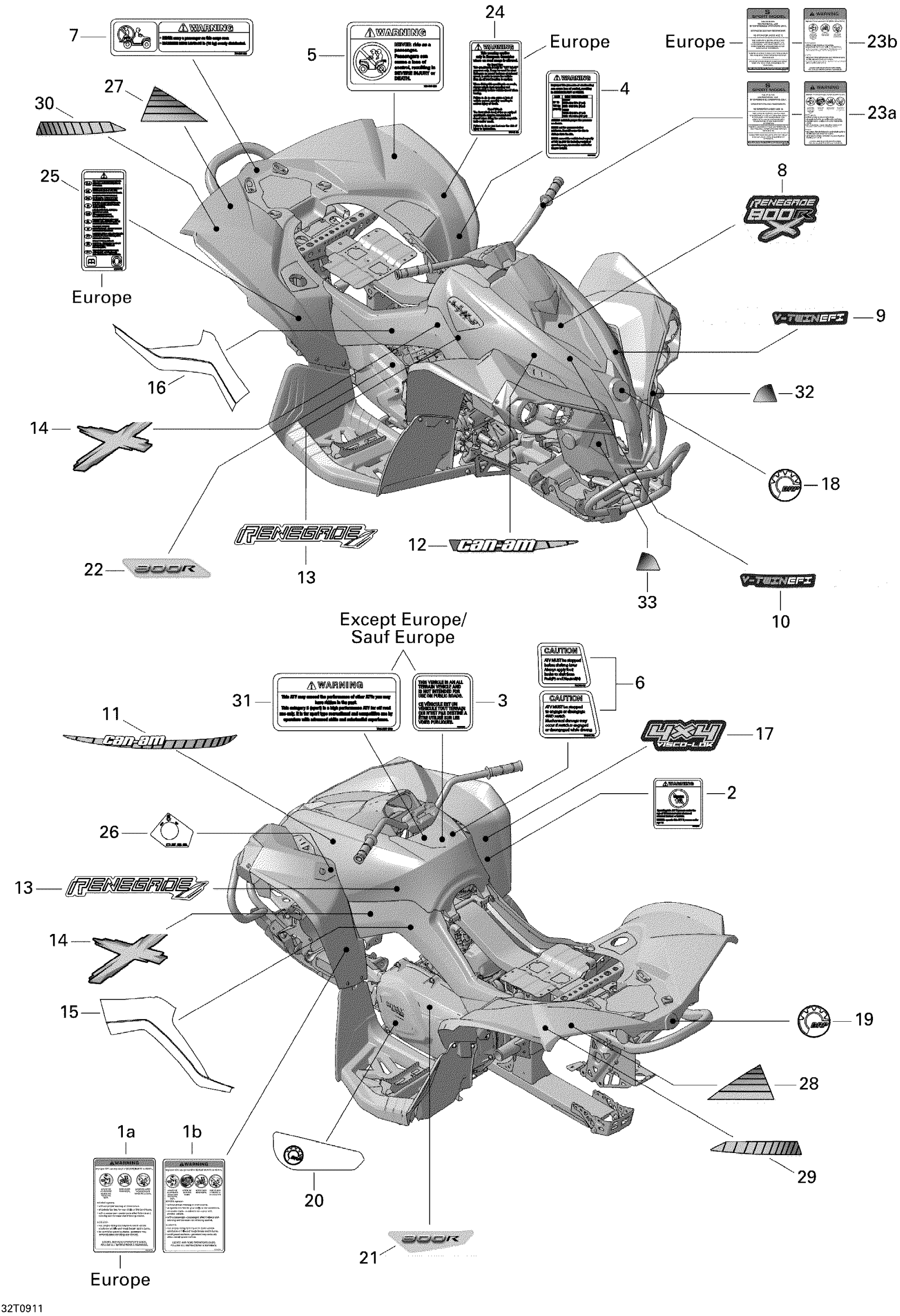 Can-Am Renegade 800R EFI X, 2009 Decals Diagram