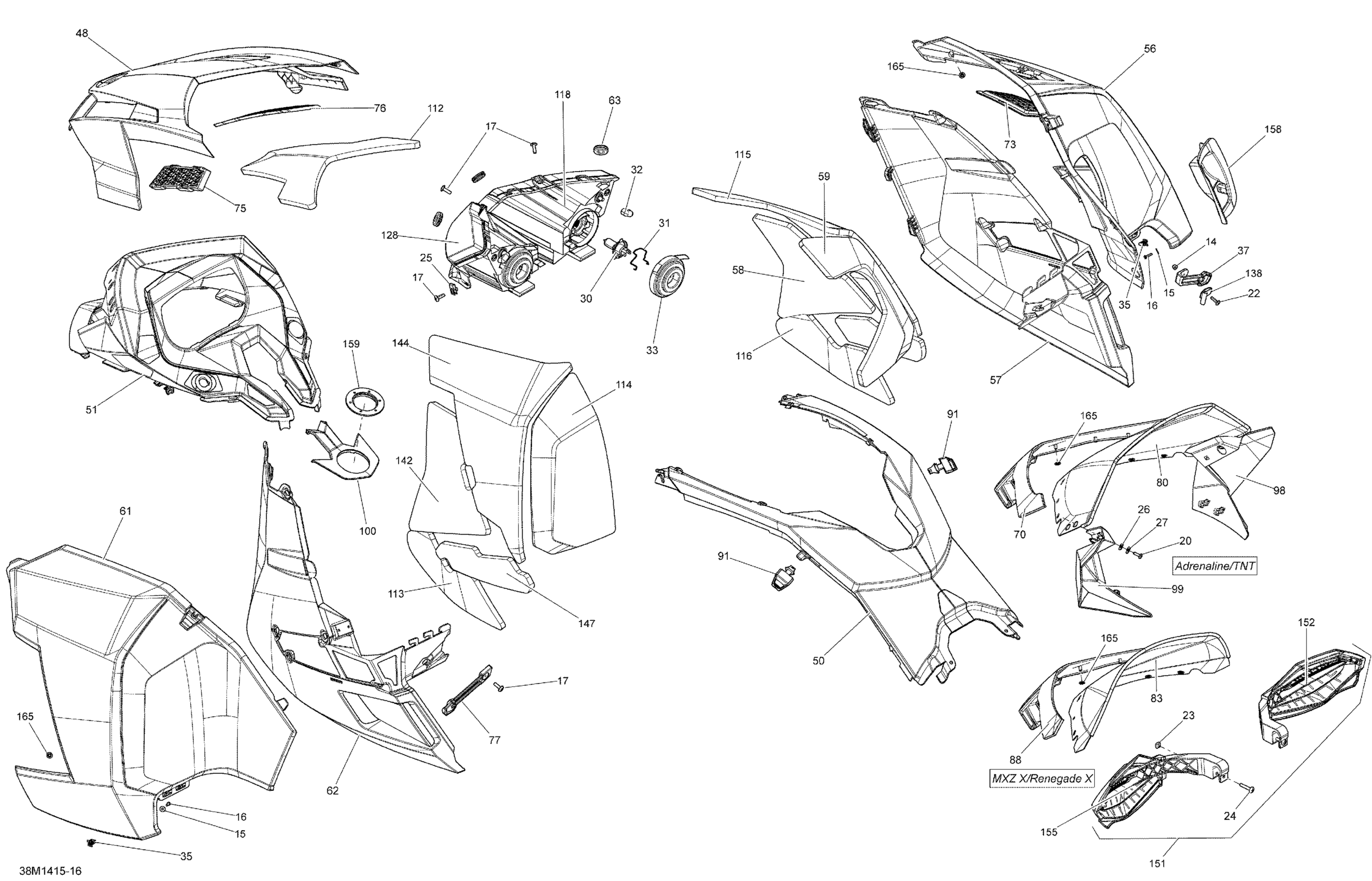 Ski-Doo RENEGADE ADRENALINE 1200 4TEC XR, 2014 09- Hood, Windshield And Console Diagram