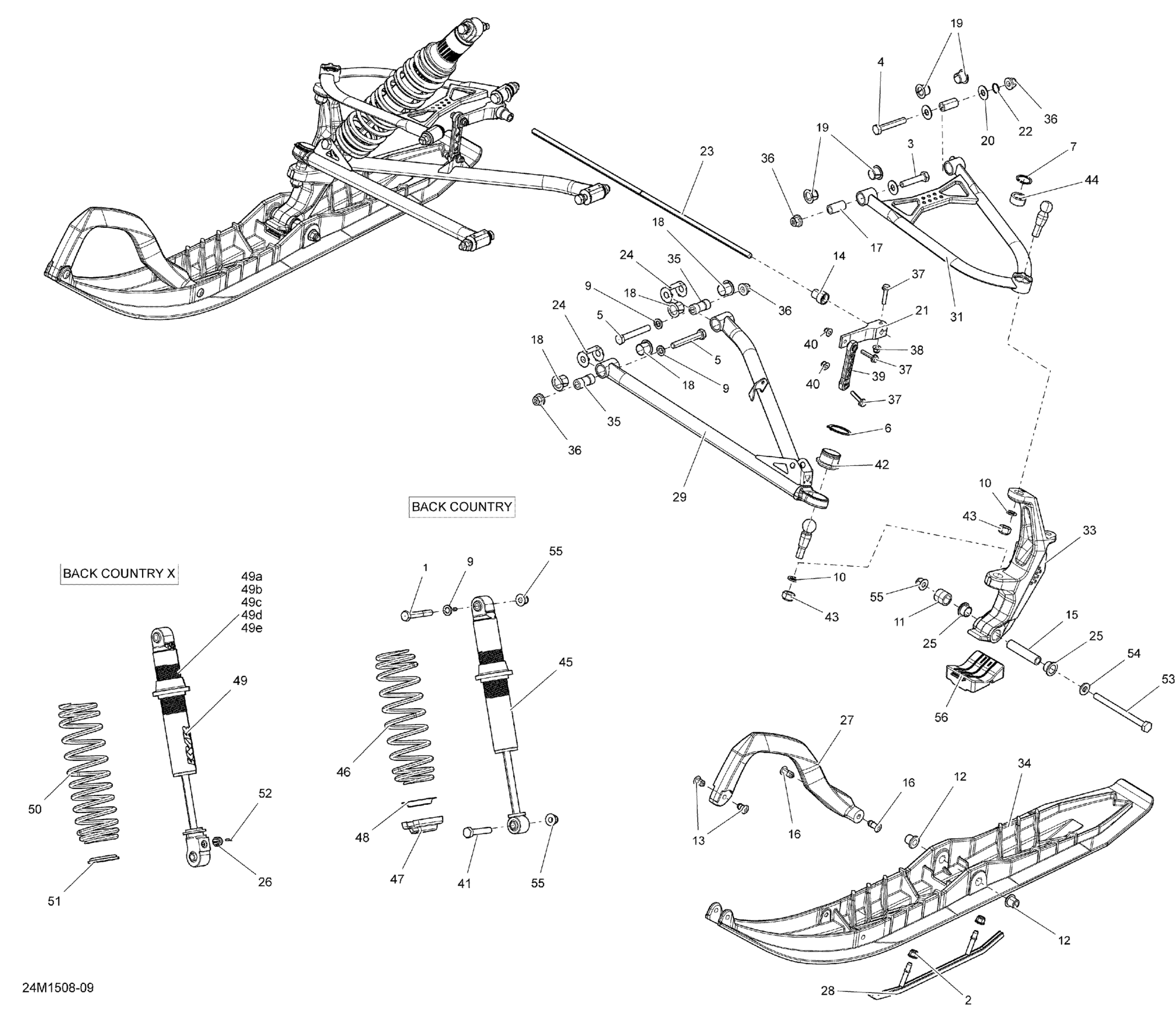 Ski-Doo Renegade Backcountry 600HOETEC, XS137, 2015 Front Suspension And Ski _24M1508 Diagram