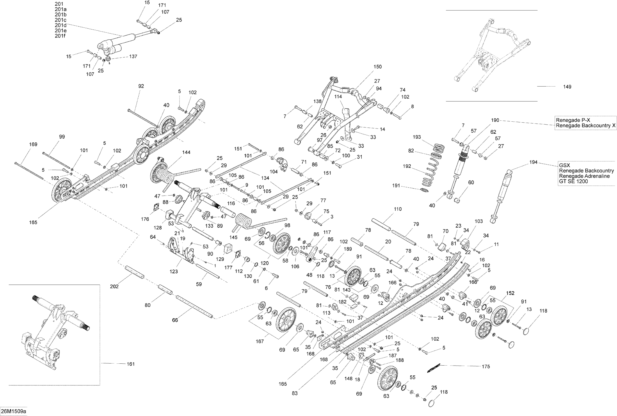 Ski-Doo Renegade Backcountry X 600HOETEC, XS137, 2015 08- Rear Suspension RM_26M1509a Diagram
