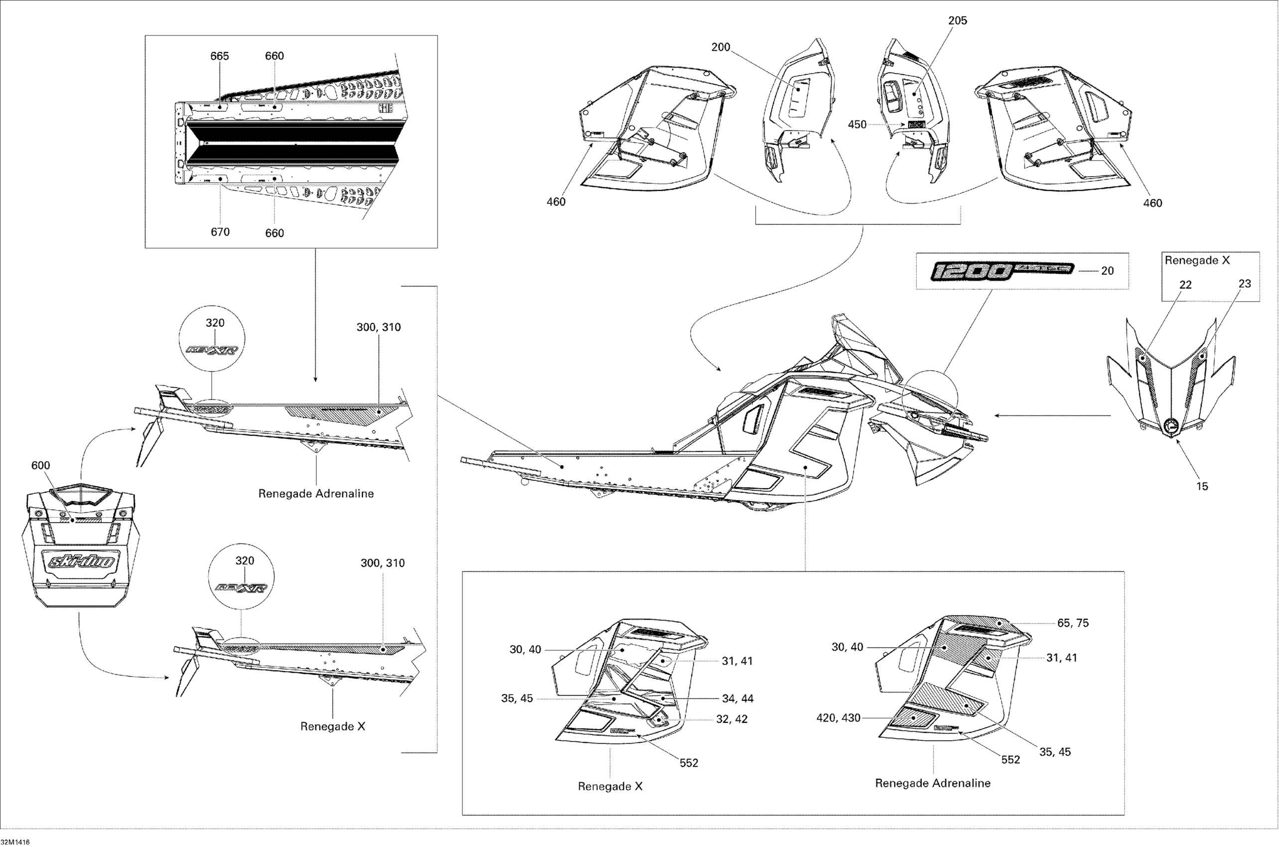 Ski-Doo RENEGADE X 12004TEC XR, 2014 Decals X Diagram