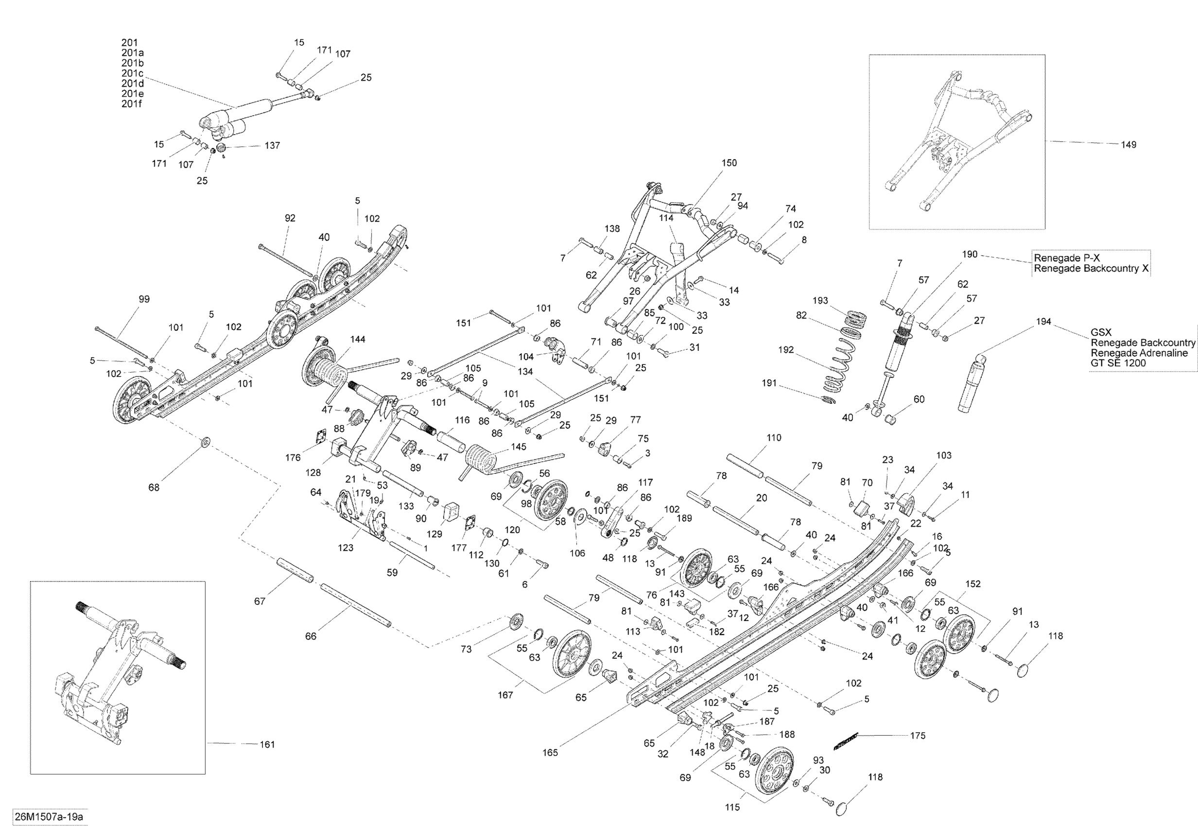 Ski-Doo Renegade X 600HOETEC, XS137, 2015 08- Rear Suspension RM_26M1507a Diagram