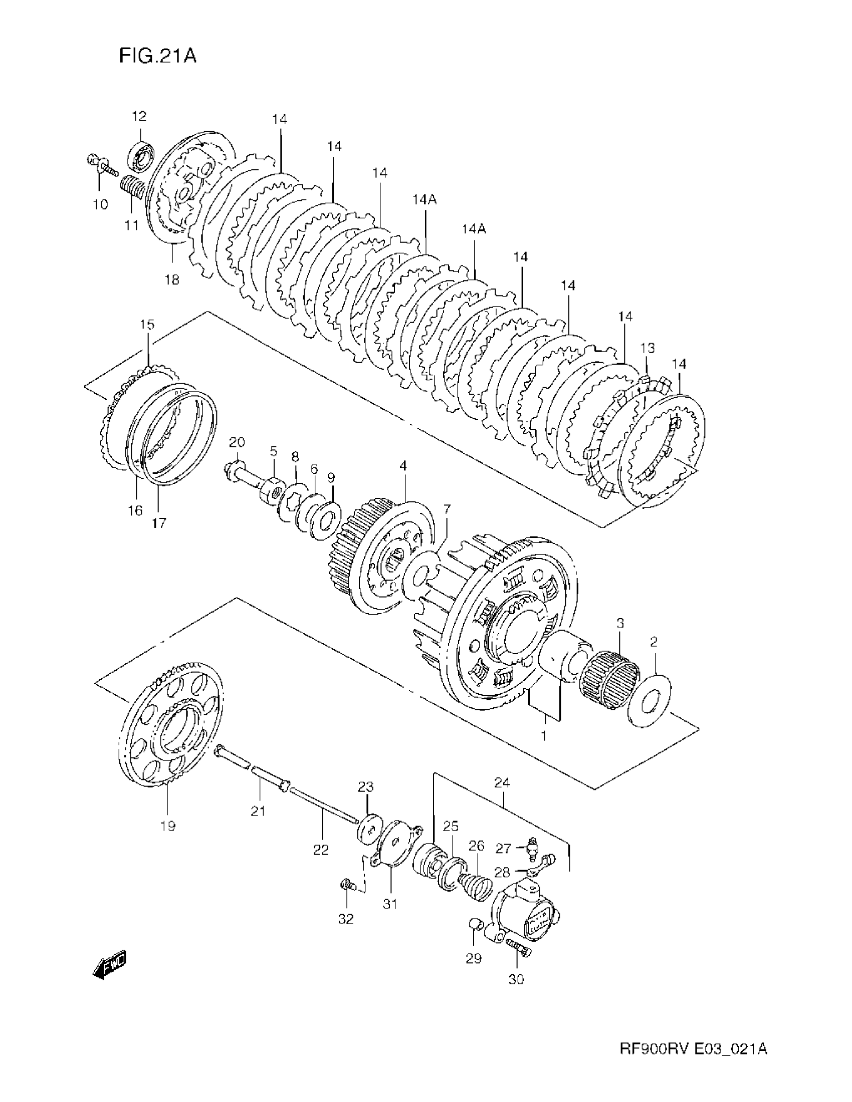 Suzuki RF900RV (1997) CLUTCH (MODEL S/T/V) Diagram