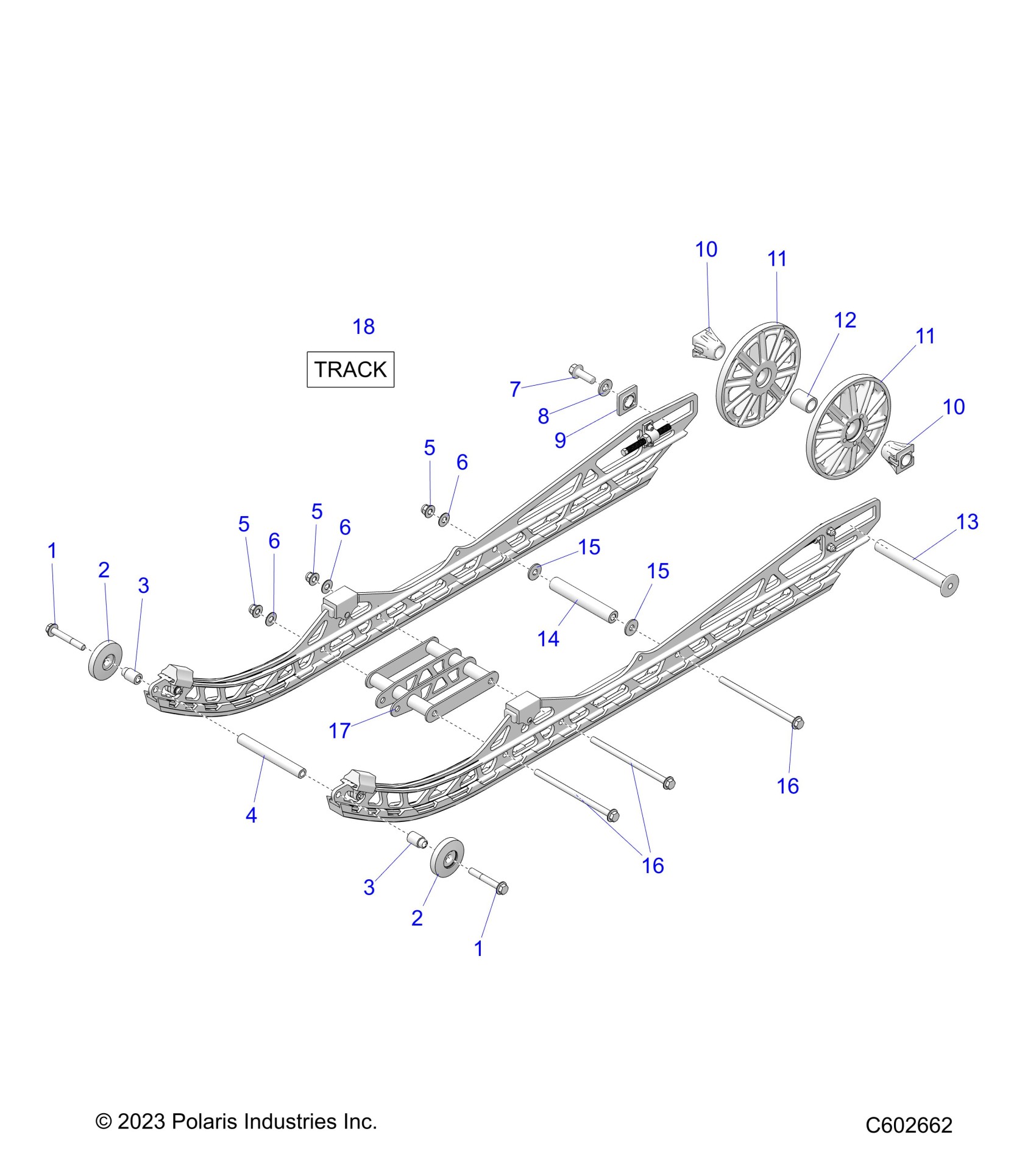 Polaris RIOT 3 PRO/3 S PRO ALL OPTIONS (R03) - J25DNCX/DNFX SUSPENSION, REAR ASM. - J25DNCX/DNFX (C602662) Diagram