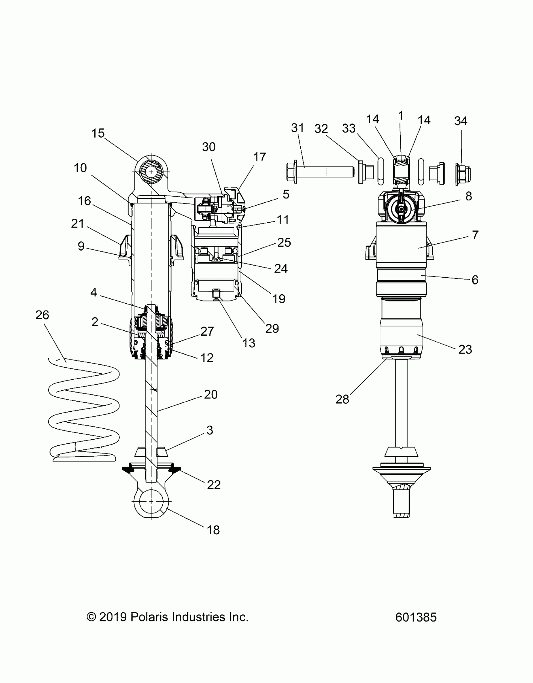 Polaris RIOT/RIOT 3 ALL OPTIONS (R01) - J22DRBX/DREX/DRGX/DRHX/DMCX/DMFX/DMGX SUSPENSION, SHOCK, REAR TRACK, QS3 3, PREMIUM, 120 PREMIUM - J22DMGXXXA/DRGXXXA (601385) Diagram
