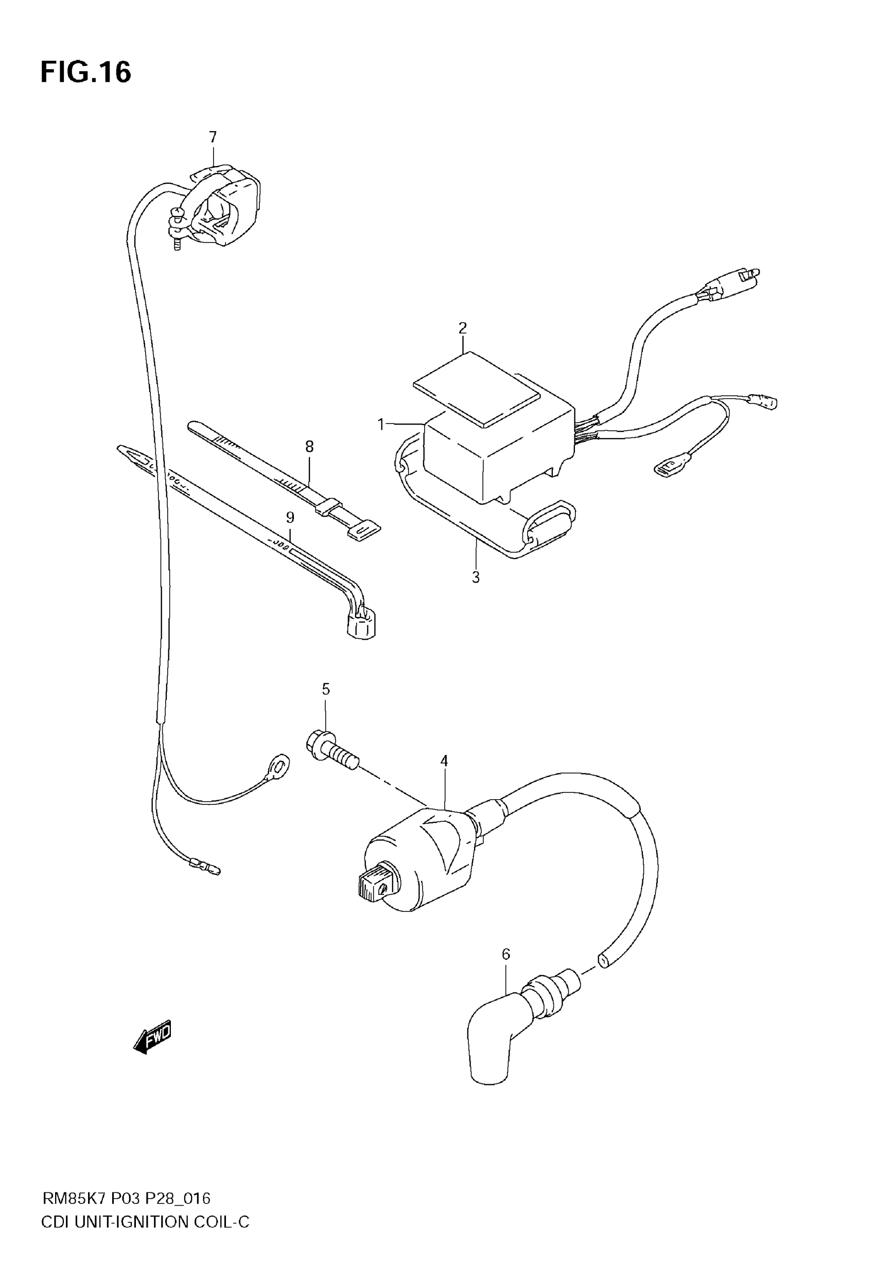Suzuki RM-85 (2009) CDI UNIT - IGNITION COIL Diagram