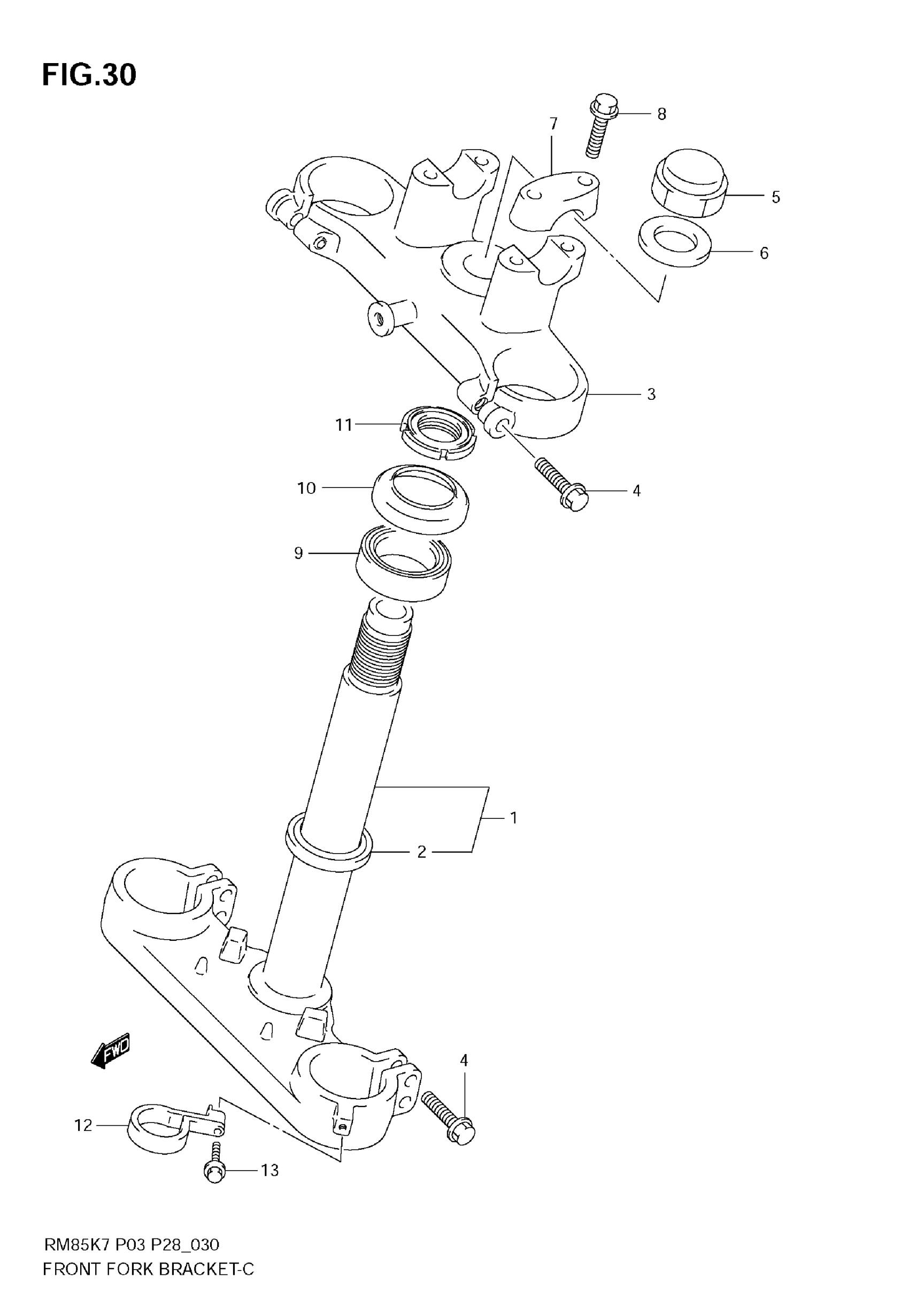 Suzuki RM-85 (2009) FRONT FORK BRACKET Diagram