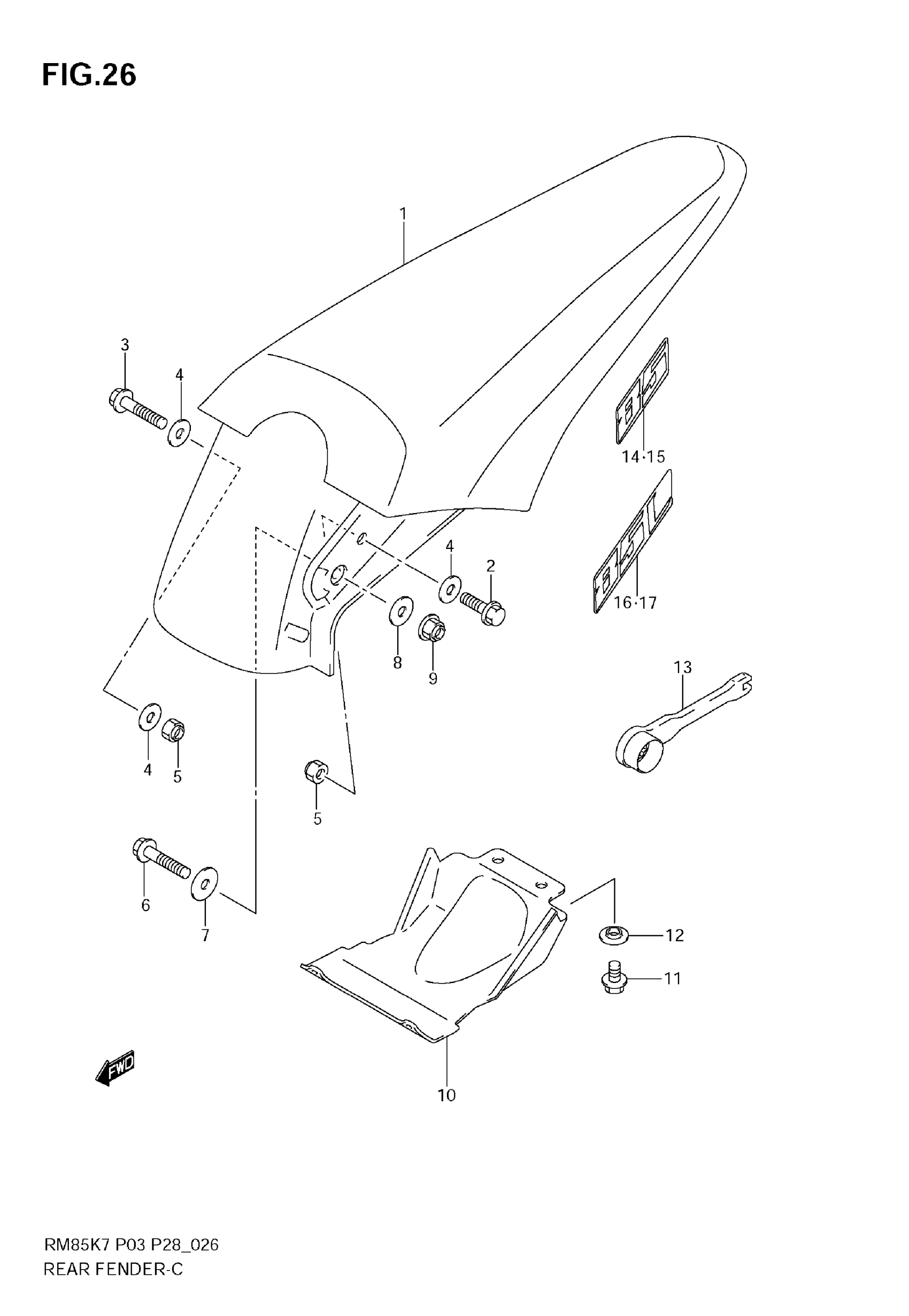 Suzuki RM-85 (2009) REAR FENDER Diagram