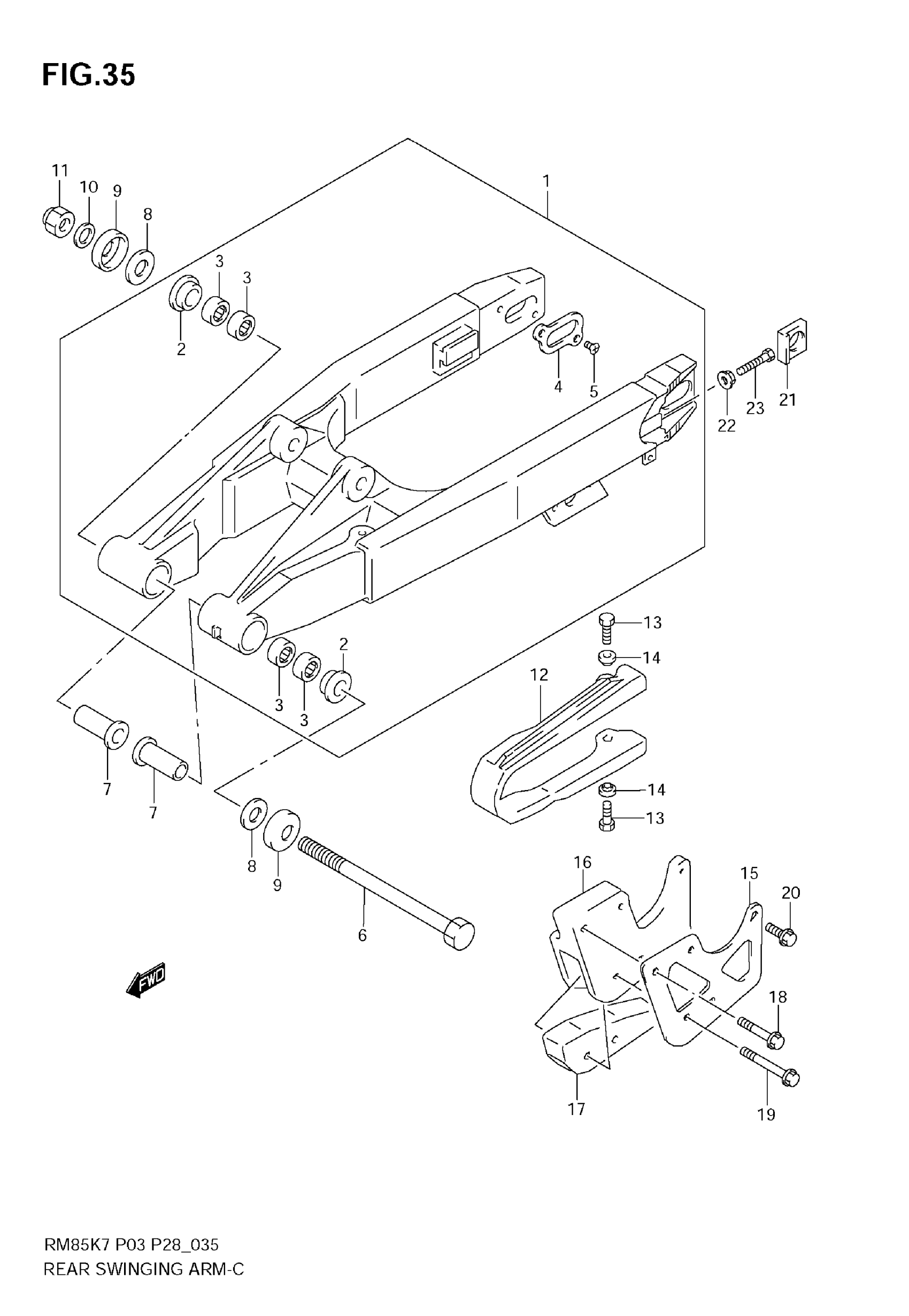 Suzuki RM-85 (2009) REAR SWINGING ARM Diagram