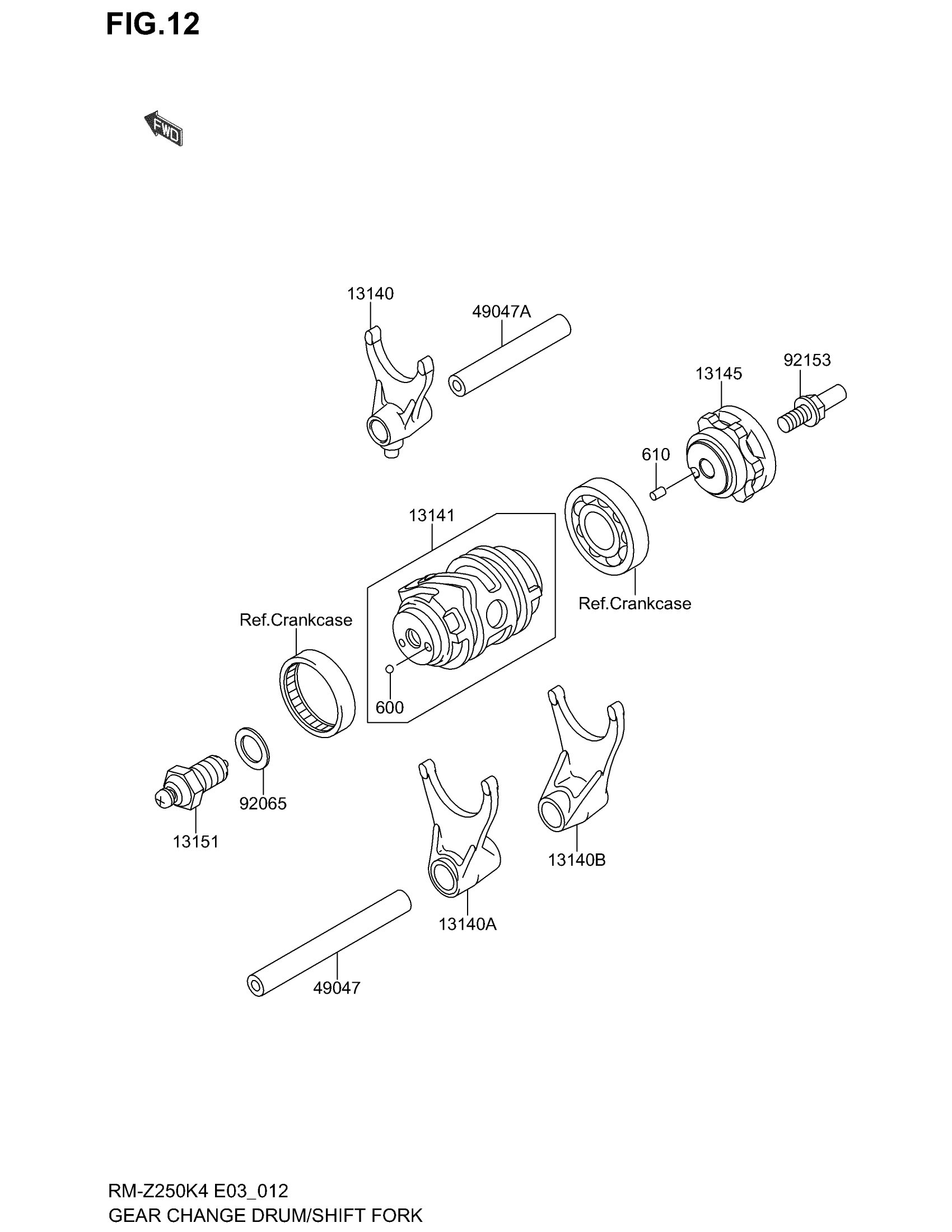 Suzuki RM-Z250 (2004) GEAR CHANGE DRUM/SHIFT FORK Diagram