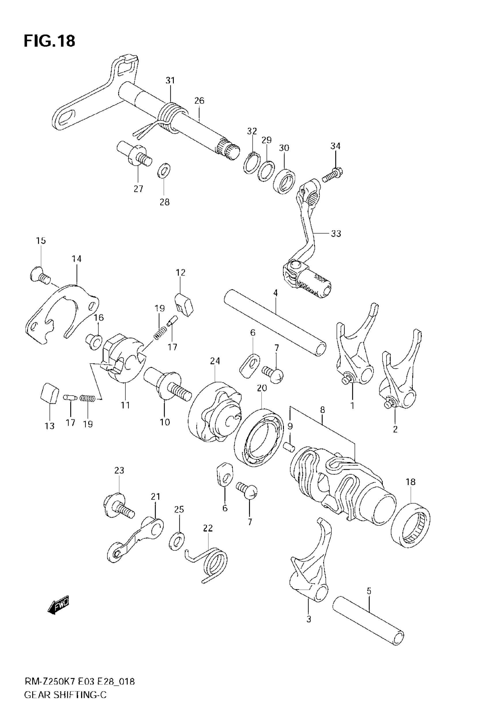 Suzuki RM-Z250 (2009) GEAR SHIFTING (MODEL K7) Diagram