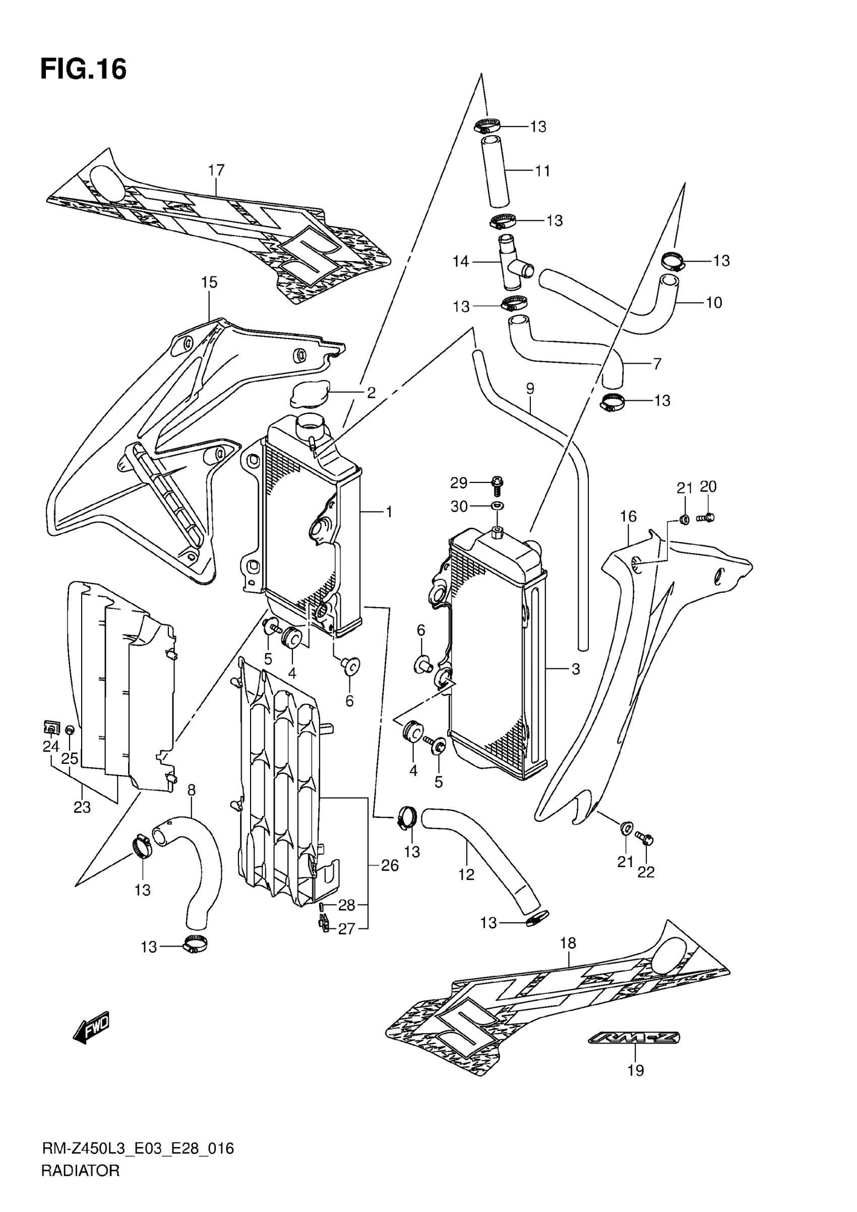 Suzuki RM-Z450L3 (2013) RADIATOR Diagram