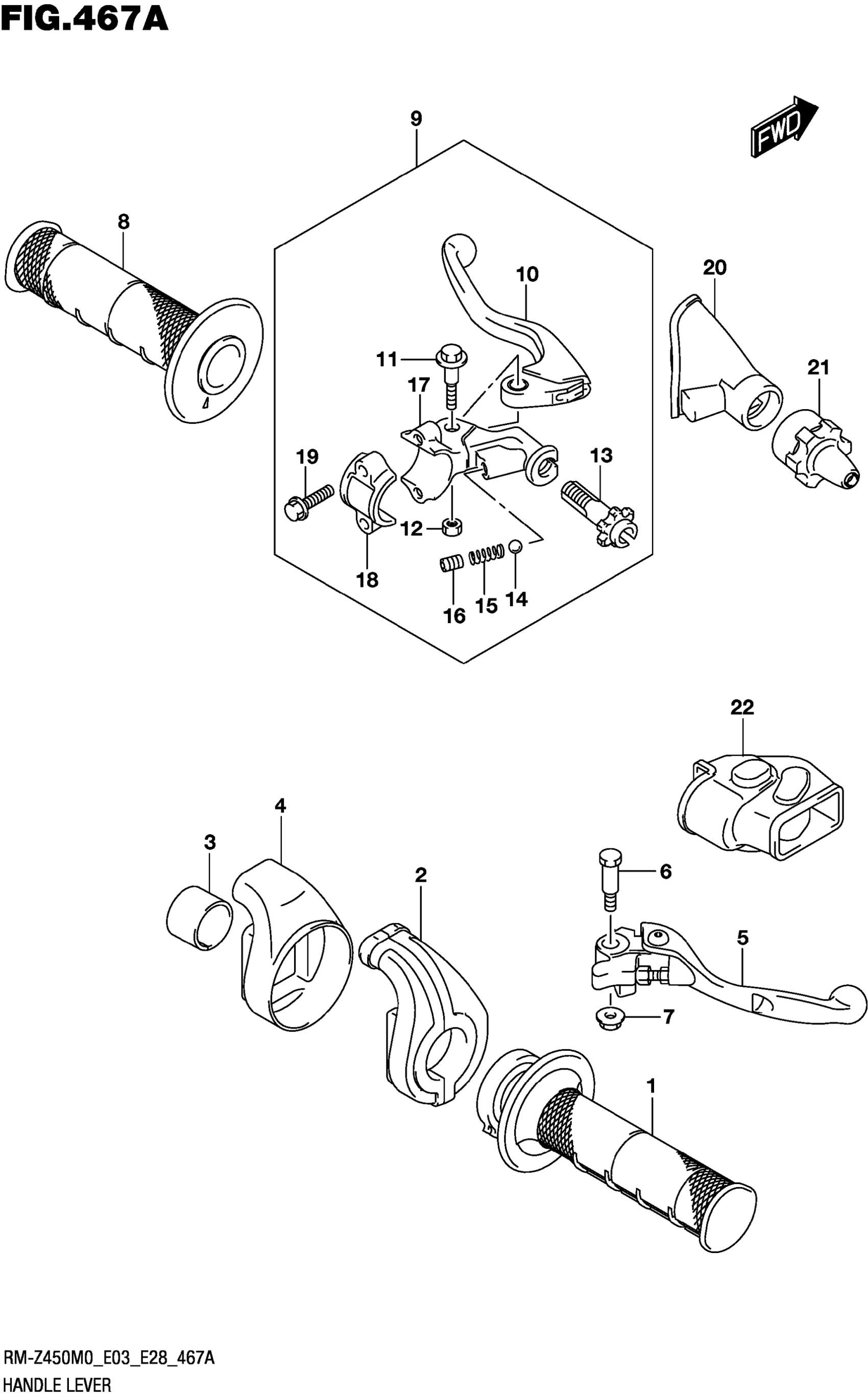 Suzuki RM-Z450M0 (2020) HANDLE LEVER Diagram