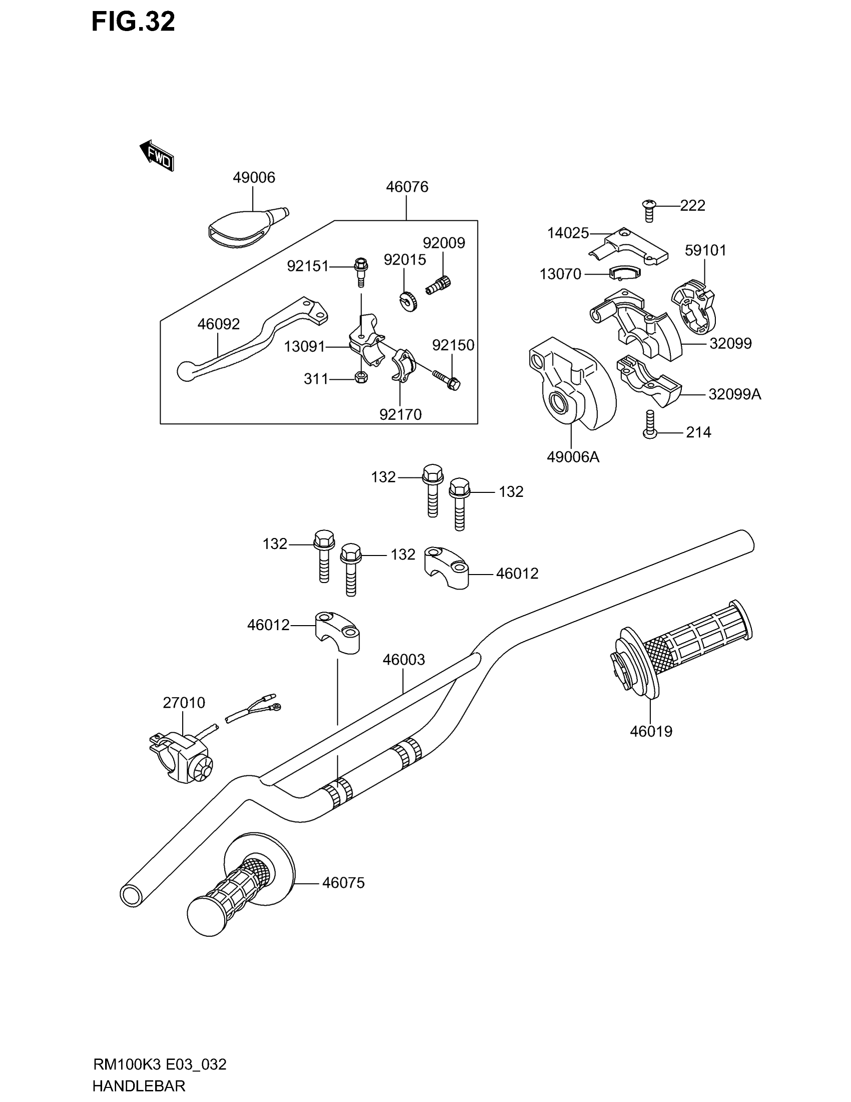 Suzuki RM100 (2003) HANDLEBAR Diagram
