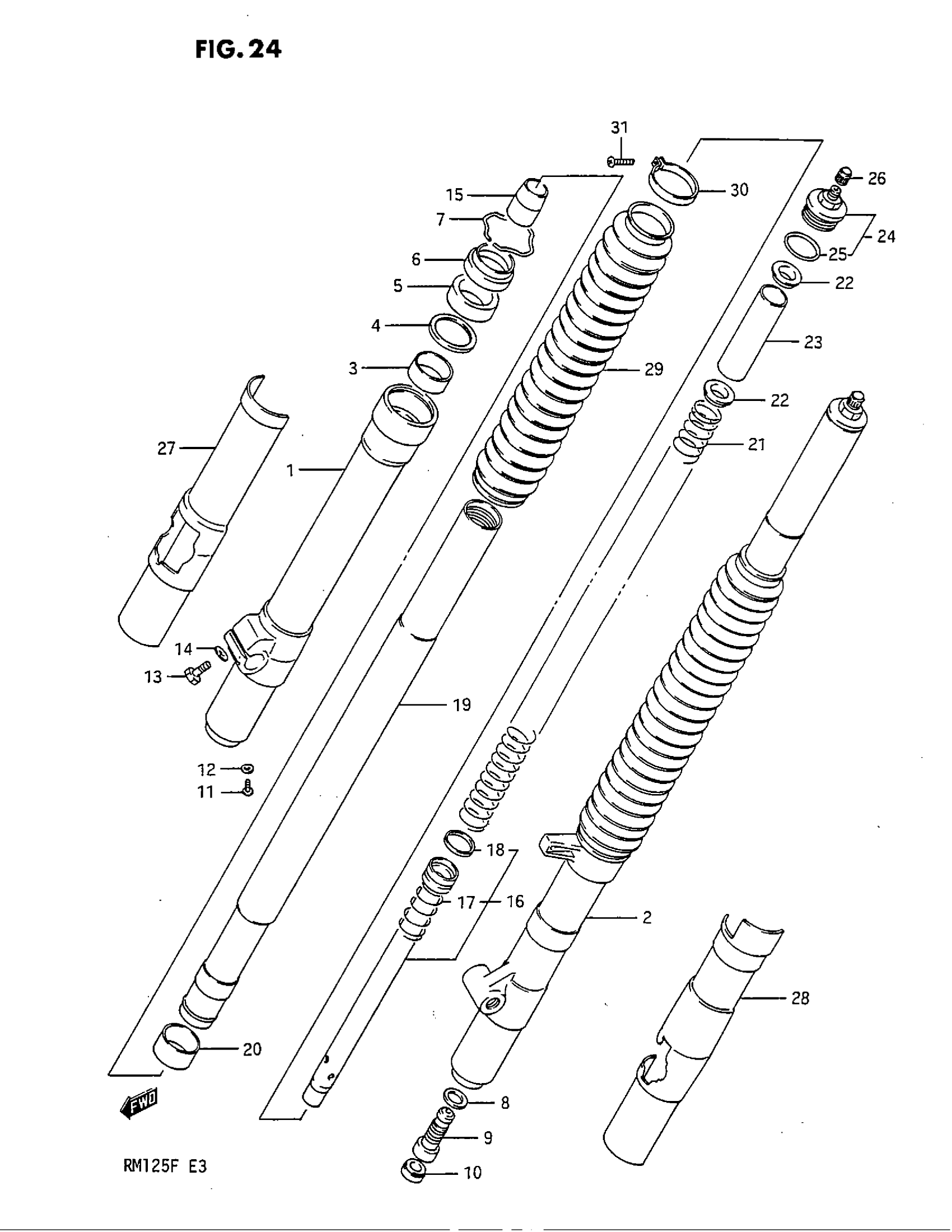 Suzuki RM125 (1985) FRONT FORK (MODEL F) Diagram